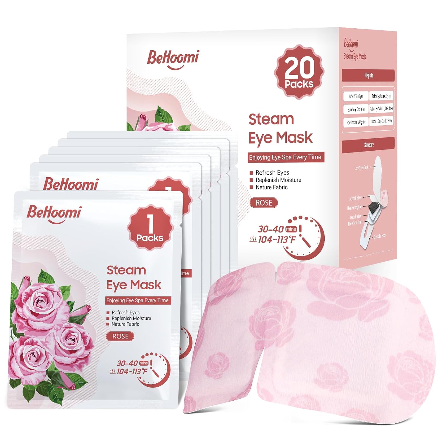 - Self Heating Steam Eye Mask:2 Steps to use BeHoomi Steam eye mask, just open and put on, no need microwave or electric, an easier way to refresh your eyes. Moist heated Eye masks warm eye compress is comfortable to wear.