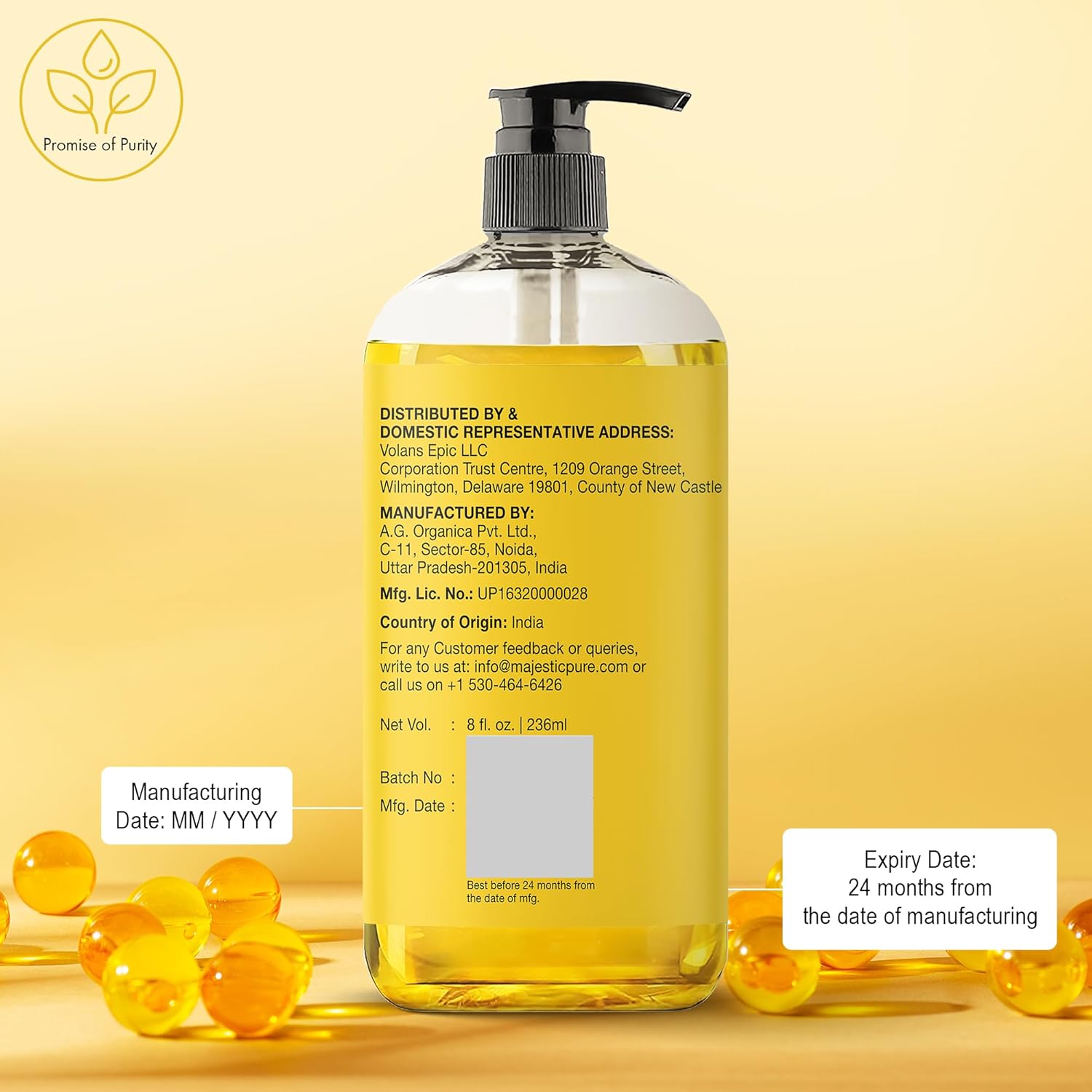 Majestic Pure Vitamin E Oil - 100% Pure & Natural, 20,000 IU | Premium Grade, Cold-Pressed and Tocopherol to Repair Dry, Damaged Skin | Moisturizing Skin, Hair and Scalp 8 Fl Oz