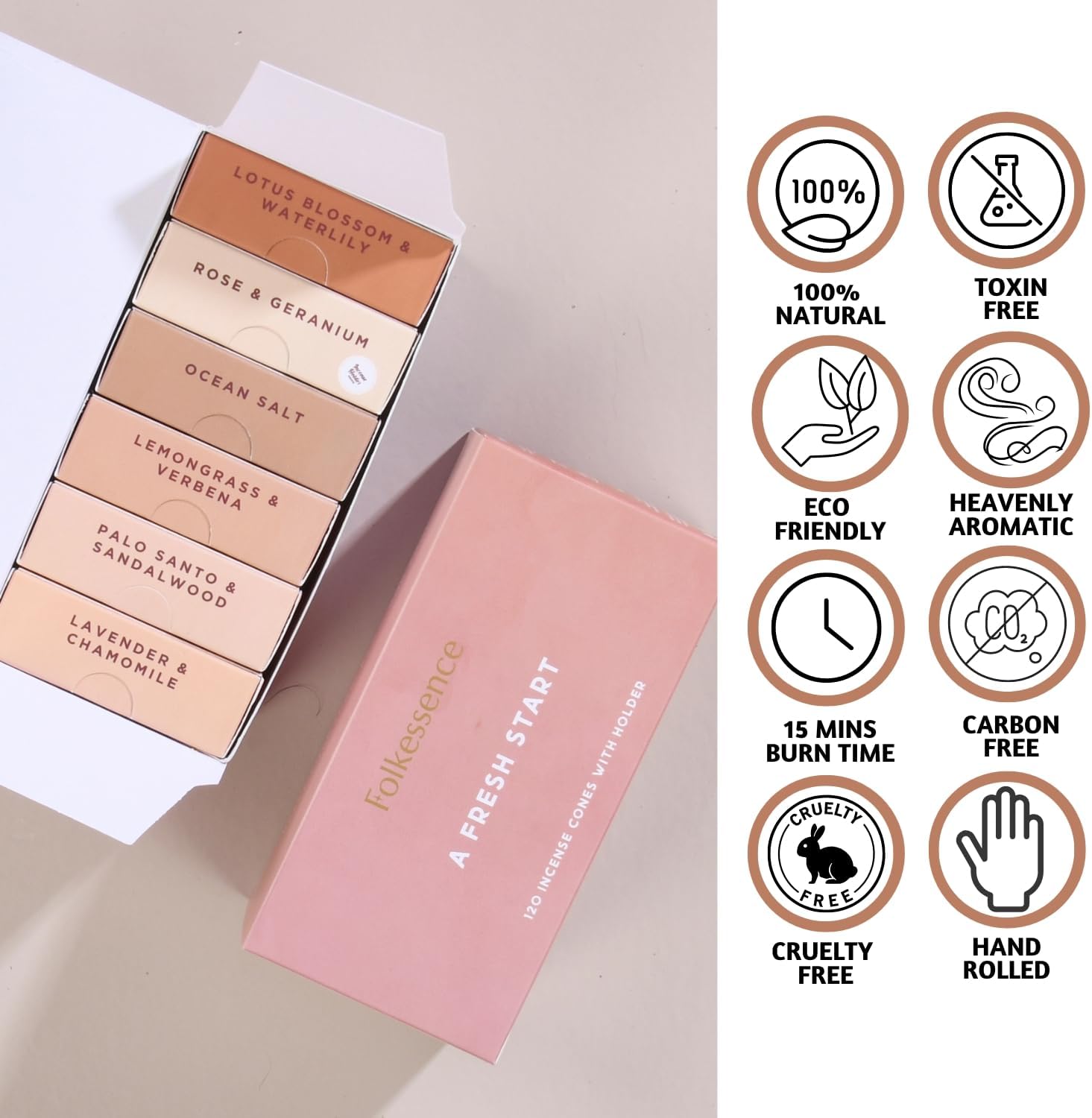 Folkulture Incense Cones Scented | Set of 6 (120 Cones) with Incense Cones Holder | Lavender Incense, Palo Santo, Sandalwood Inscents for Gifts for Her | Incense Cone Variety Pack