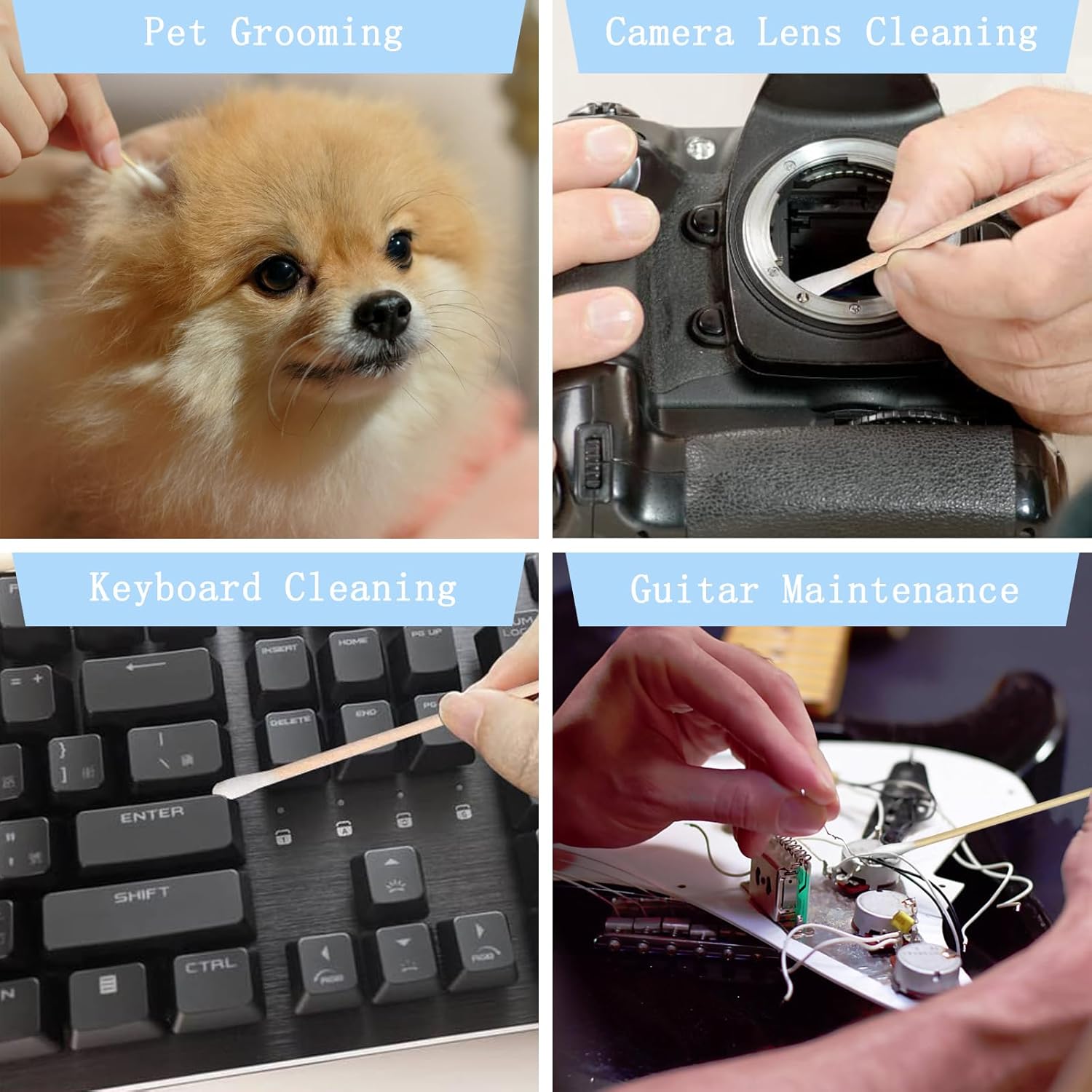 - Get versatility and easily tackle different cleaning tasks with our set of 100 pointed tip and 100 round tip swabs. The pointed tips are perfect for precision cleaning in tight spaces, while the round tips are more suitable for broader cleaning tasks.