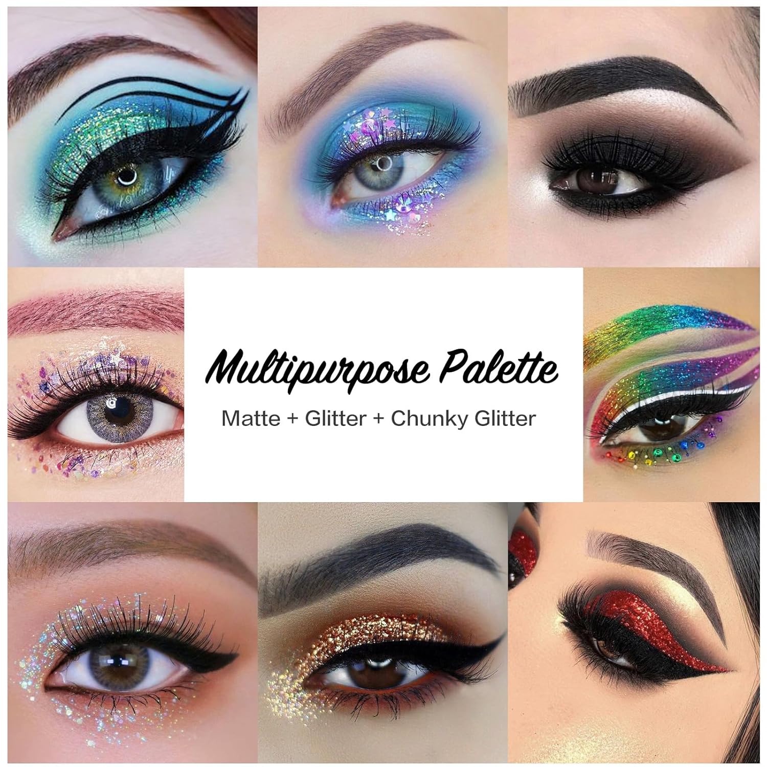 - For optimal results with this versatile palette, it's recommended to use a glitter primer or glue (note: the 6 chunky glitter shades don't require primer). These vibrant glitter eyeshadows are both waterproof and long-lasting. Beyond the eyes, this palette's shades can be used for nail, body, and hair art. However, be cautious with the small sequins; avoid getting them in your eyes or swallowing them.