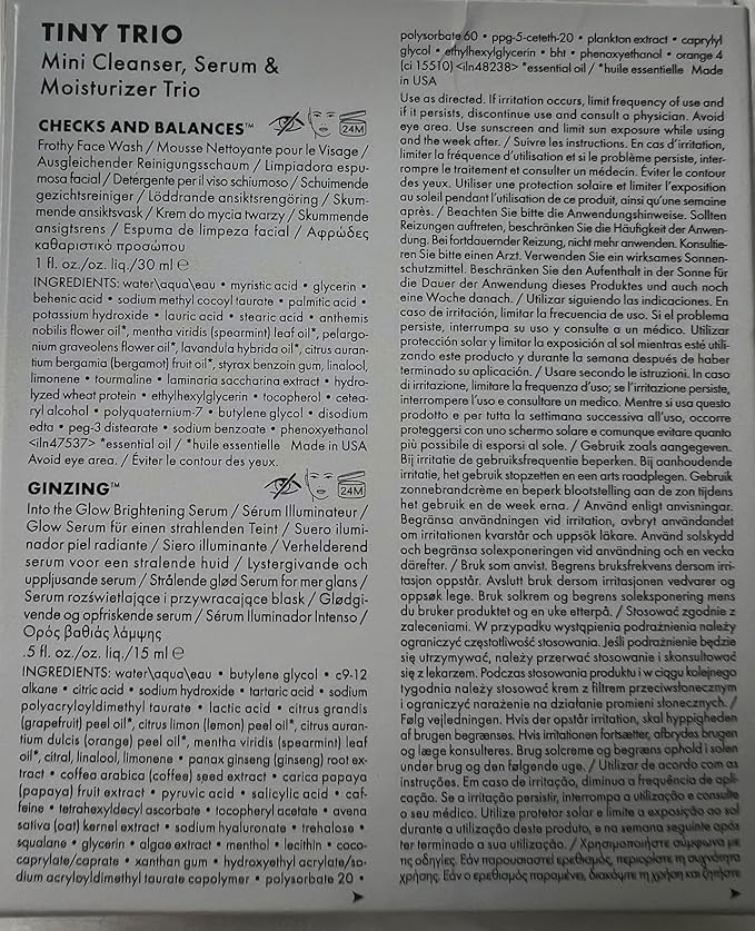 - INCLUDES: 1 fl oz / 30 mL Travel Size Checks And Balances Frothy Face Wash, .5 fl oz / 15 mL Travel Size Ginzing Into The Glow Brightening Serum, and 1 fl oz / 30 mL Travel Size Dr. Andrew Weil For Origins Mega Mushroom Relief & Resilience Fortifying Emulsion.