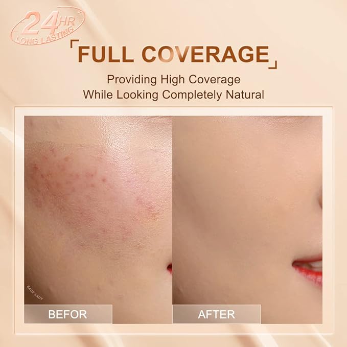 - 【FULL COVERAGE FLAWLESS FOUNDATION】 A flawless cover up foundation is super silky smooth, fluid touch to even skin, invisible pores and fine lines effectively, that delivers perfect coverage while blurring imperfections and looking completely natural.
