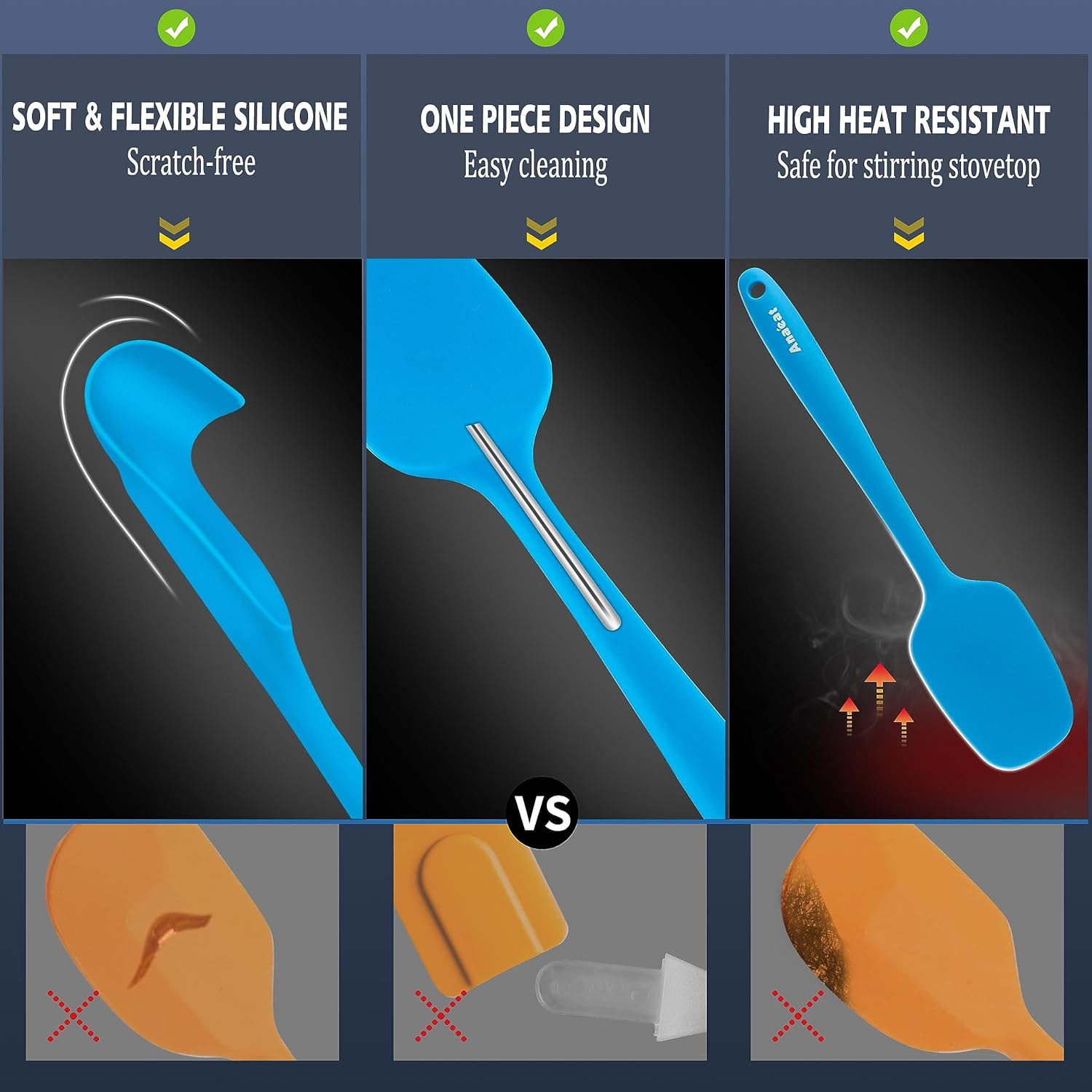 - SEAMLESS ONE-PIECES DESIGN, EASY TO CLEAN - Anaeat spatulas are seamless design that are dishwasher safe, easy to hand washing, and ONE-PIECES DESIGN designed to prevent the build-up of food and grime which allows for safe and healthy cooking.