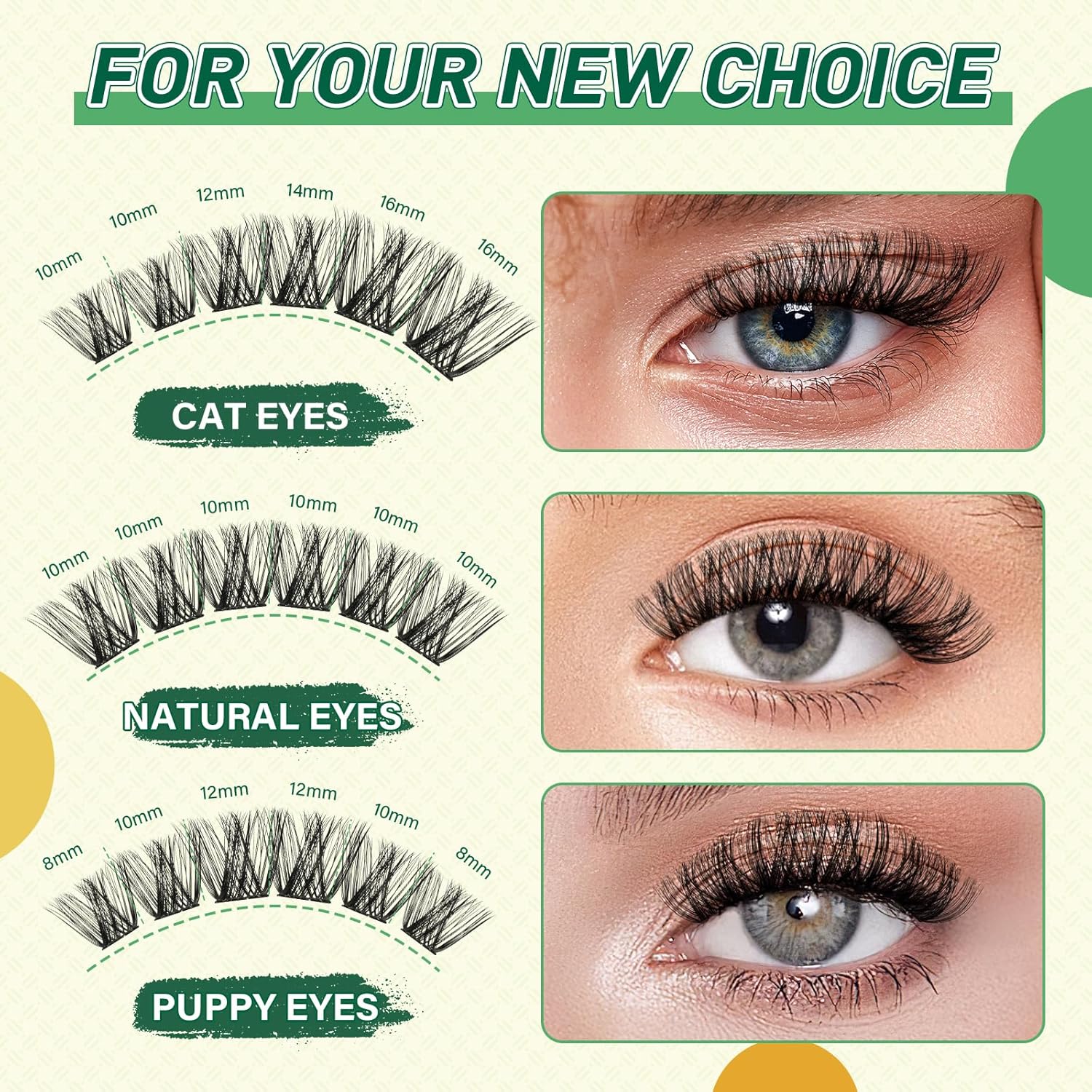 - 【144pcs High Quality Cluster Lashes】The simulated eyelash material is more realistic and will not feel plastic, comfortable and non-irritating on the eyes, allowing you to easily maintain a perfect makeup all day long.