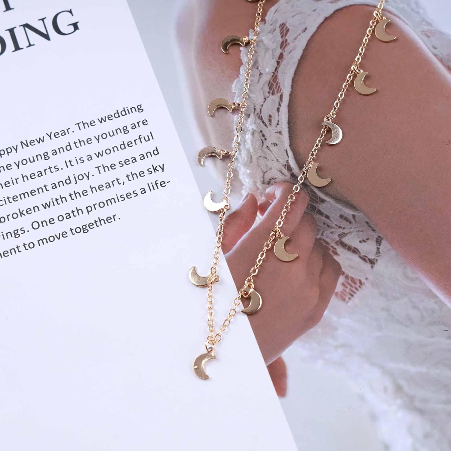 Vintage Moon Dangle Necklace Curved Moon Pendant Necklace Tiny Moon Choker Necklace Gold Minimal Choker Necklace Jewelry for Women