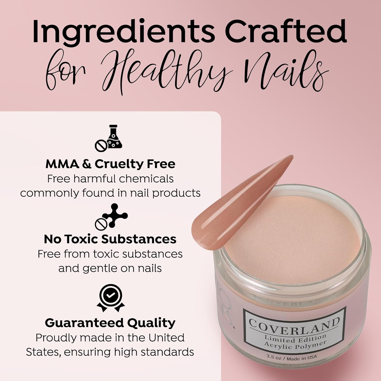 - βοΈππππ ππππππππ πππππ: The flexibility and adhesion properties of Coverland colored acrylic nail powder make it easy to shape nails with precision, and offers nice control for professionals who prefer to work with a polymerization rate of moderate to fast.