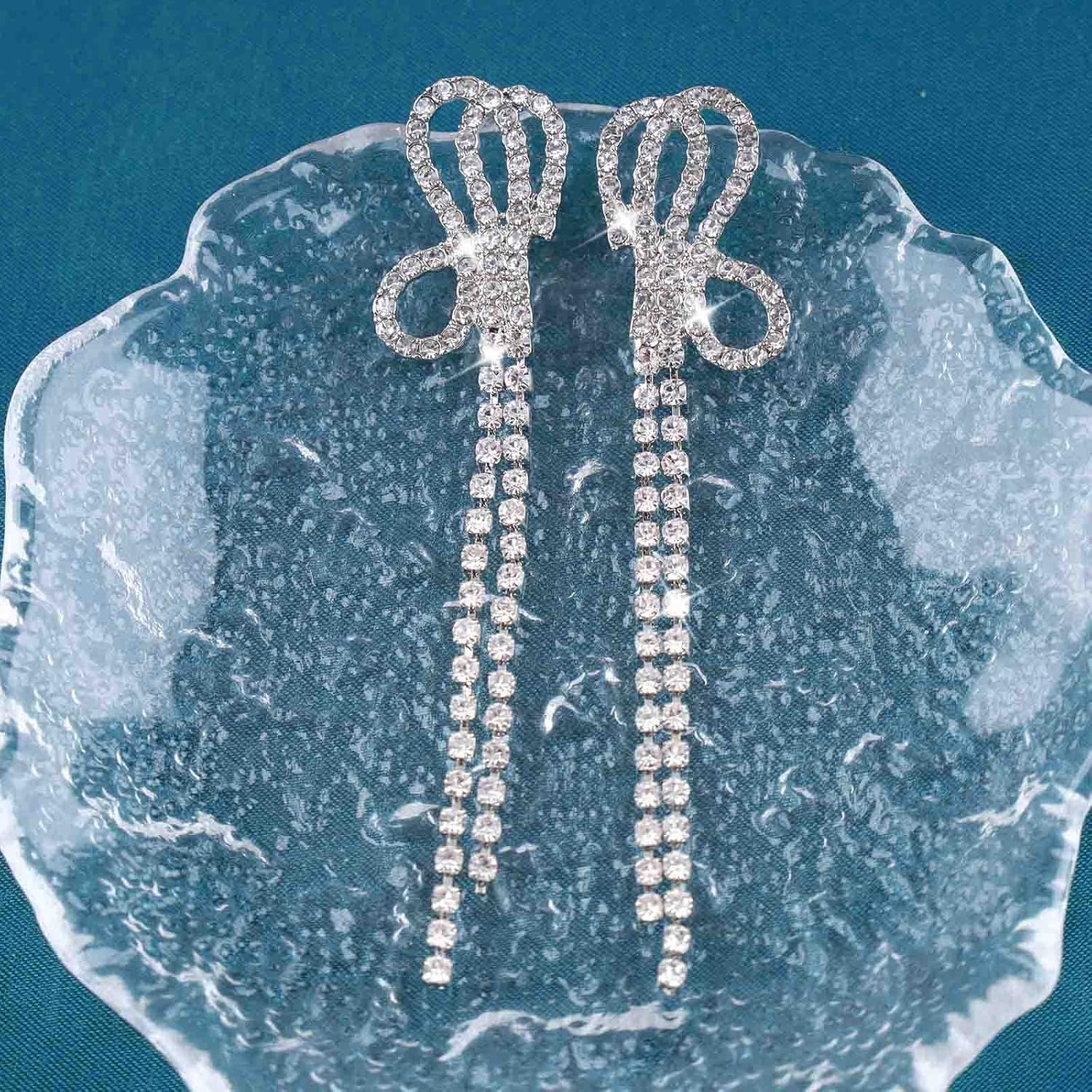 - Rhinestone bow dangle earrings.Gift Object:A Unique and Stunning Jewellery,Give it to a Perfect Gifts For a Best Friend or any Beloved Ones.You Will Receive Many Compliments!