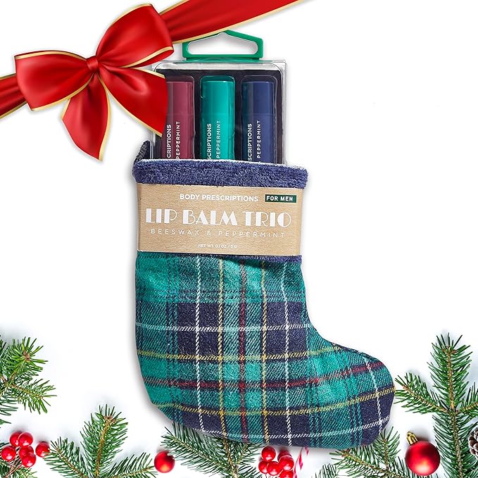 Body Prescriptions Lip Balm Trio for Men - Beeswax and Peppermint | Christmas Stocking Present Set | Nourishing and Moisturizing Formula | Protect and Hydrate Dry Lips | Great Holiday Present for Him