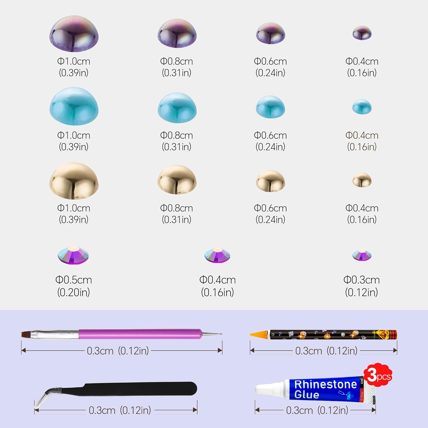 - What You Will Receive: 60g(30g*2)mixed size flat back pearls and rhinestones. 3*Rhinestone Glue. 1* wax pencil for rhinestones. 1*Pencil sharpener(color random). The mix half round pearls and rhinestones can make more beautiful handicrafts for your friends, parents, yourselfs on any festivals.If you need a mixed size pack of pearl rhinestones