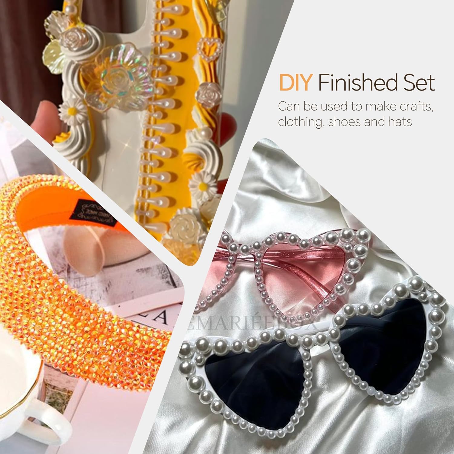 - What You Will Receive: 60g(30g*2)mixed size flat back pearls and rhinestones. 3*Rhinestone Glue. 1* wax pencil for rhinestones. 1*Pencil sharpener(color random). The mix half round pearls and rhinestones can make more beautiful handicrafts for your friends, parents, yourselfs on any festivals.If you need a mixed size pack of pearl rhinestones, search on Amazon:B0BBL1KVMD