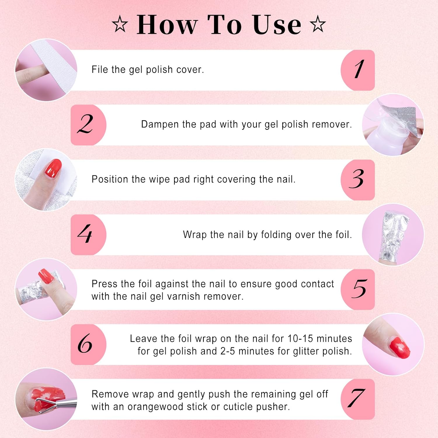 - GREAT SOAK OFF: NXJ INFILILA Foil Nail Wraps hold the polish remover well to get a good soak, getting the gel polish off in no time. Lint-free absorbent pad is designed to reduce and minimize the drying effects of acetone remover on the skin, and it uses less remover