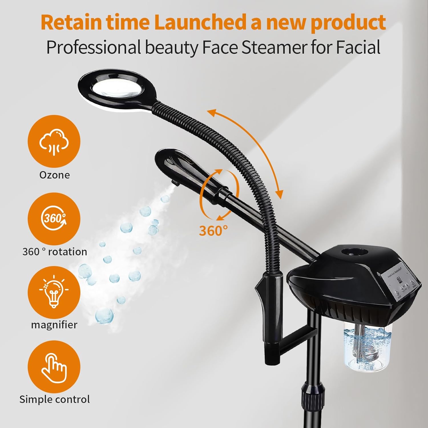 - ⭐【5 X magnifying glass】–The face steamer carries a magnifying glass looking better at the skin during the client's face or skin care,You can adjust the height and direction of the magnifying glass at will, which can play a great role in your work!