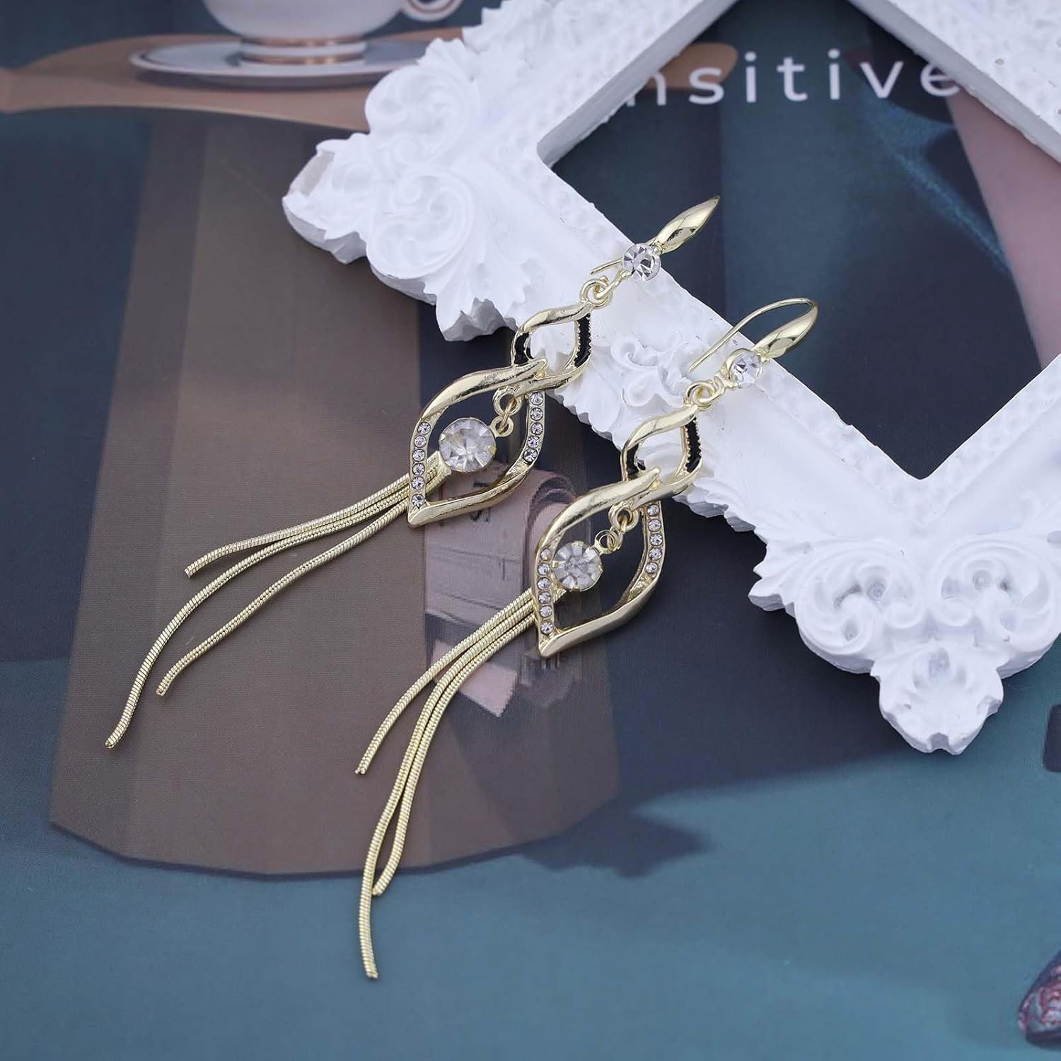 Vintage Crystal Dangle Earrings Long Rhinestone Chain Earrings Gold Swirl Square Drop Earrings Shine Cz Tassel Drop Earrings Jewelry for Women