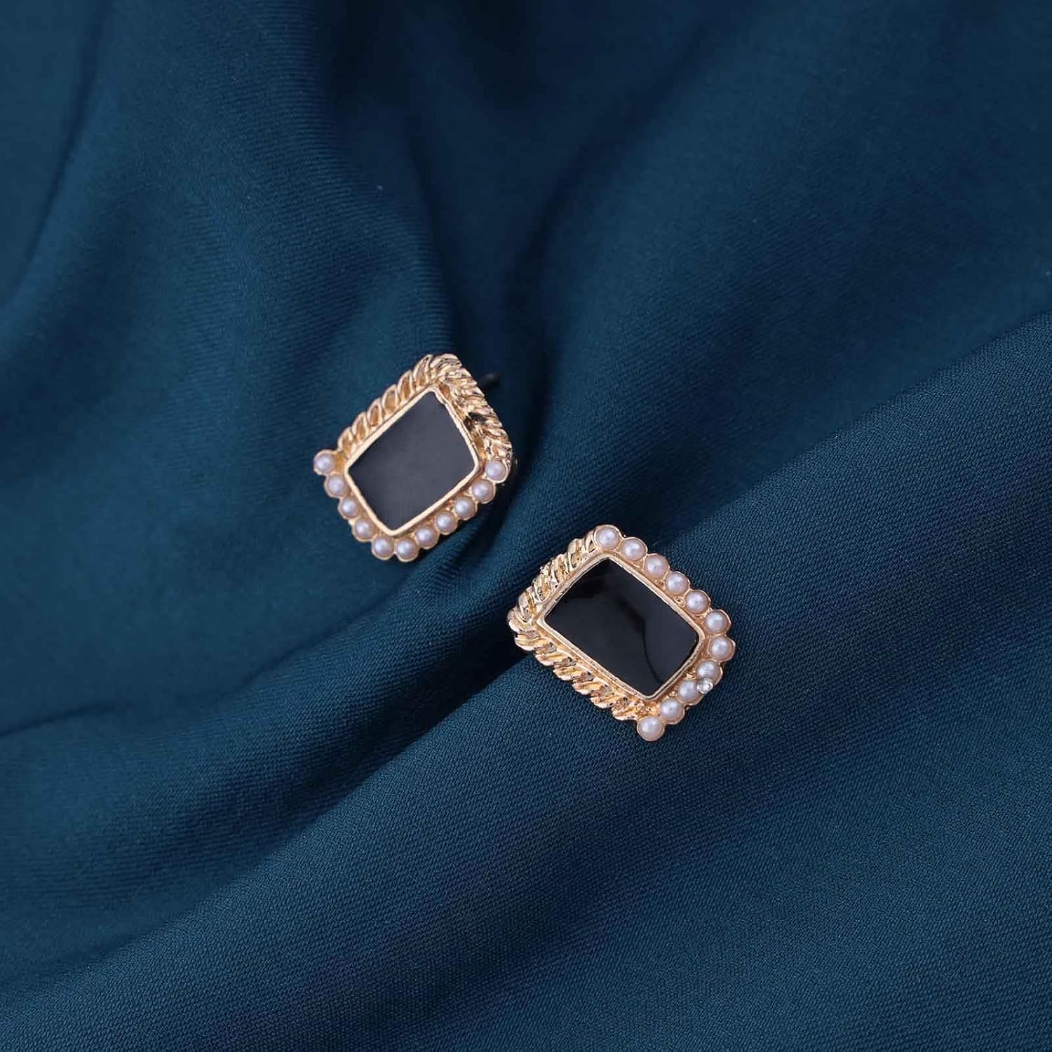 - Black square pearl stud earrings.Item Details:Handmade Item.Size:As Shown.Color:Gold.Materials:Quality Alloy.Location:Ear.Style:Boho/Vintage.