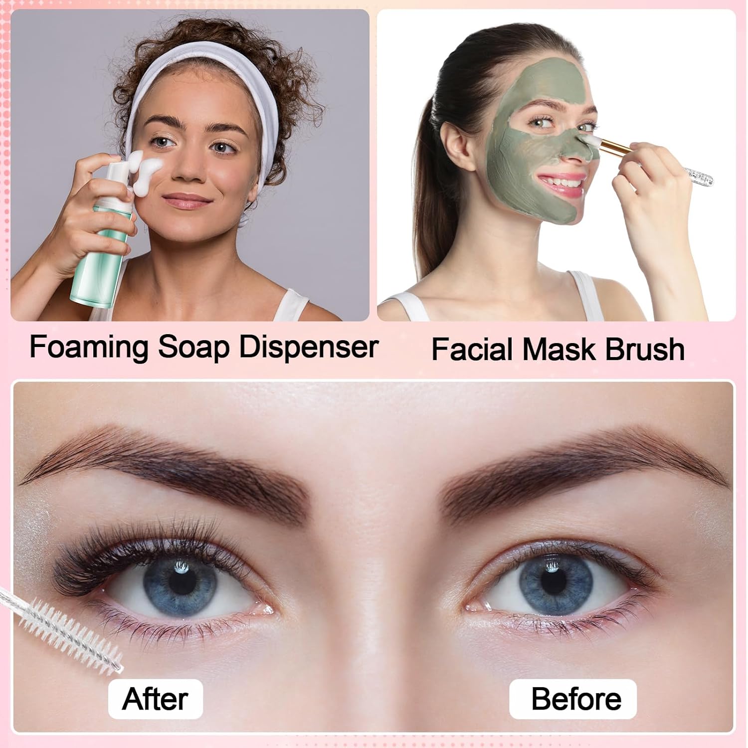 Zhehao 80 Pcs Lash Shampoo Bottle Brushes Kit 20 Foam Pump Dispensers 20 Lash Shampoo Brushes 20 Eyelash Aftercare Bag 20 Cleaning Pipes, Eyelash Extension Supplies(White, Sliver)