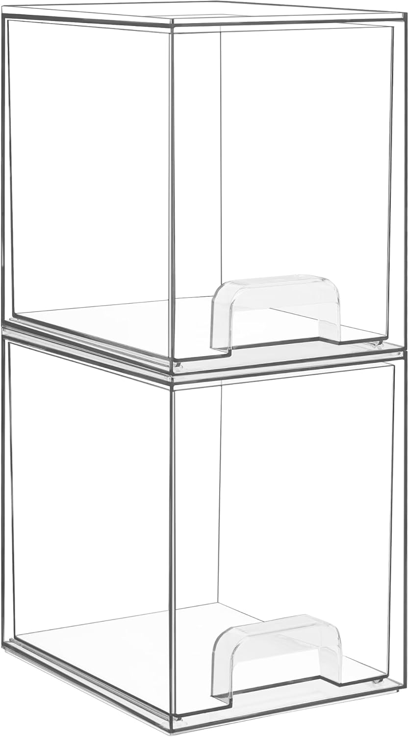 Vtopmart 7.6" H Clear Stackable Storage Drawers, 2 Pack Plastic Organizers Bins for Skincare, Cosmetics,Beauty Supplies,Ideal for Vanity, Bathroom,Kitchen Countertop,Cabinet Organization
