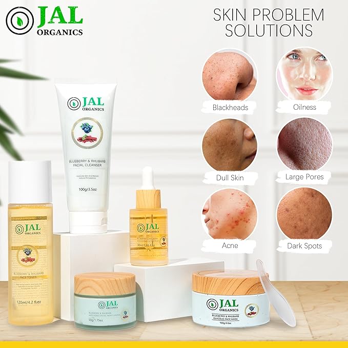 - π° Maximize Your Skincare Investment with A Smart Choice: Investing in the Jal Organics 5-piece Blueberry Rhubarb Skincare system is not just a purchase, but a smart move. Enjoy a comprehensive skincare routine without breaking the bank, thanks to our perfect blend of high-quality ingredients and multiple products. Witness the transformative effects of our premium skincare system as you indulge in cost-effective skincare luxury.