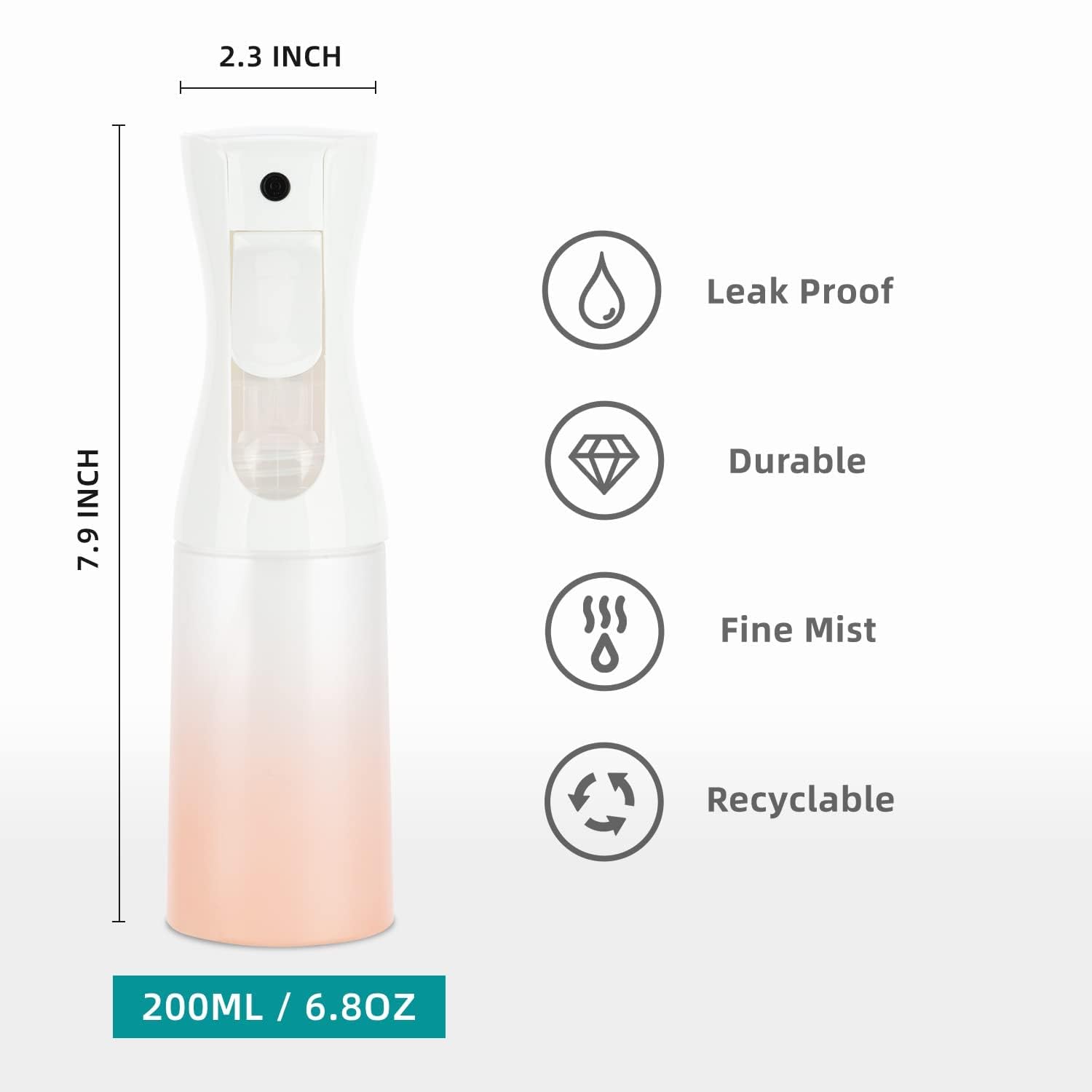 - 【High Quality】The continuous mist spray bottle is made of quality PET material with advanced technology, strong and not easily dented, durable and refillable. BPA-free, no smell, no leakage, and refillable. If anything goes wrong with your continuous spray bottle, please contact us directly.