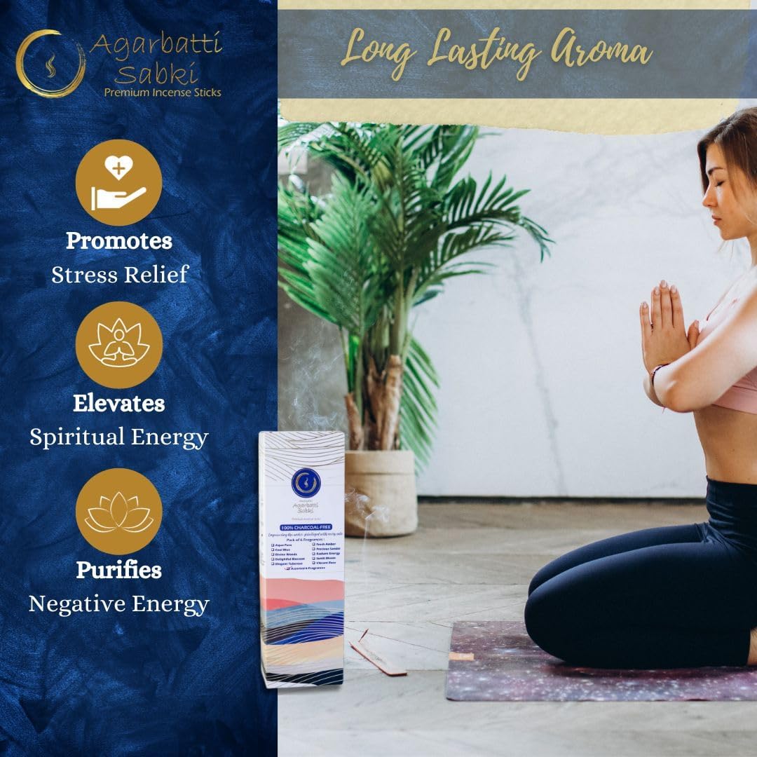 - FREE OF CHARCOAL: Incense Sticks by Agarbatti Sabki are 100% free of charcoal to avoid harmful side effects on health