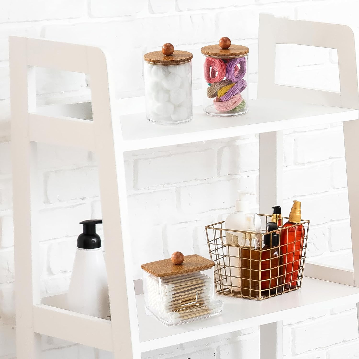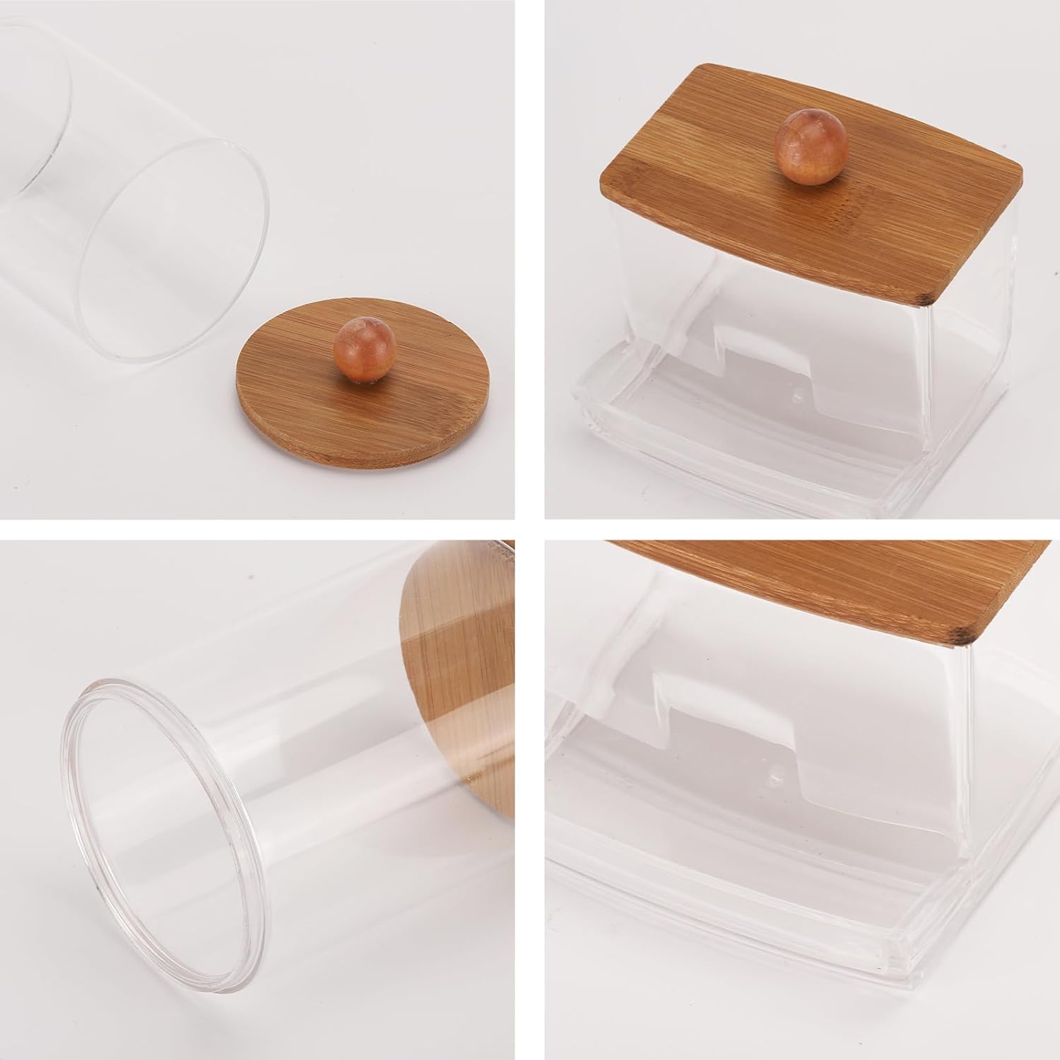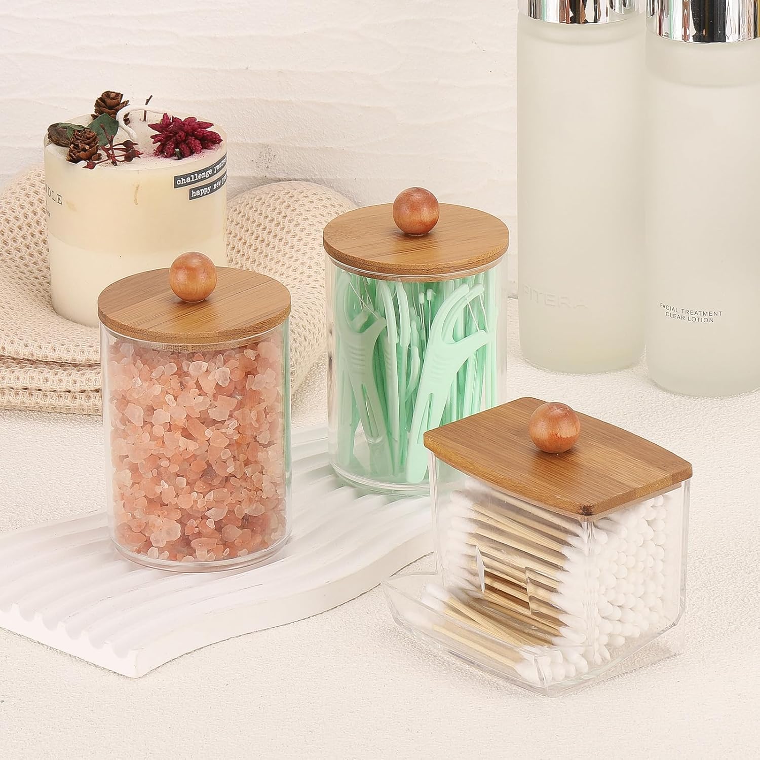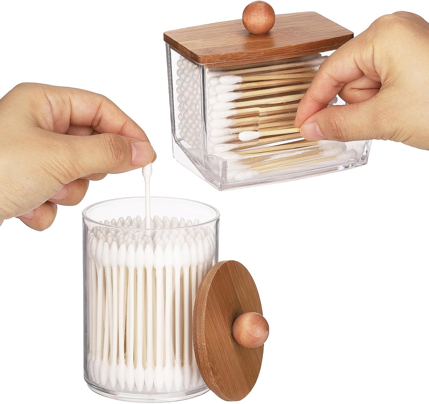 Tbestmax Qtips Holder Dispenser, 10/7 oz Cotton Ball/Swabs Storage Containers, Apothecary Jars for Bathroom Organizer Bambooo Lids
