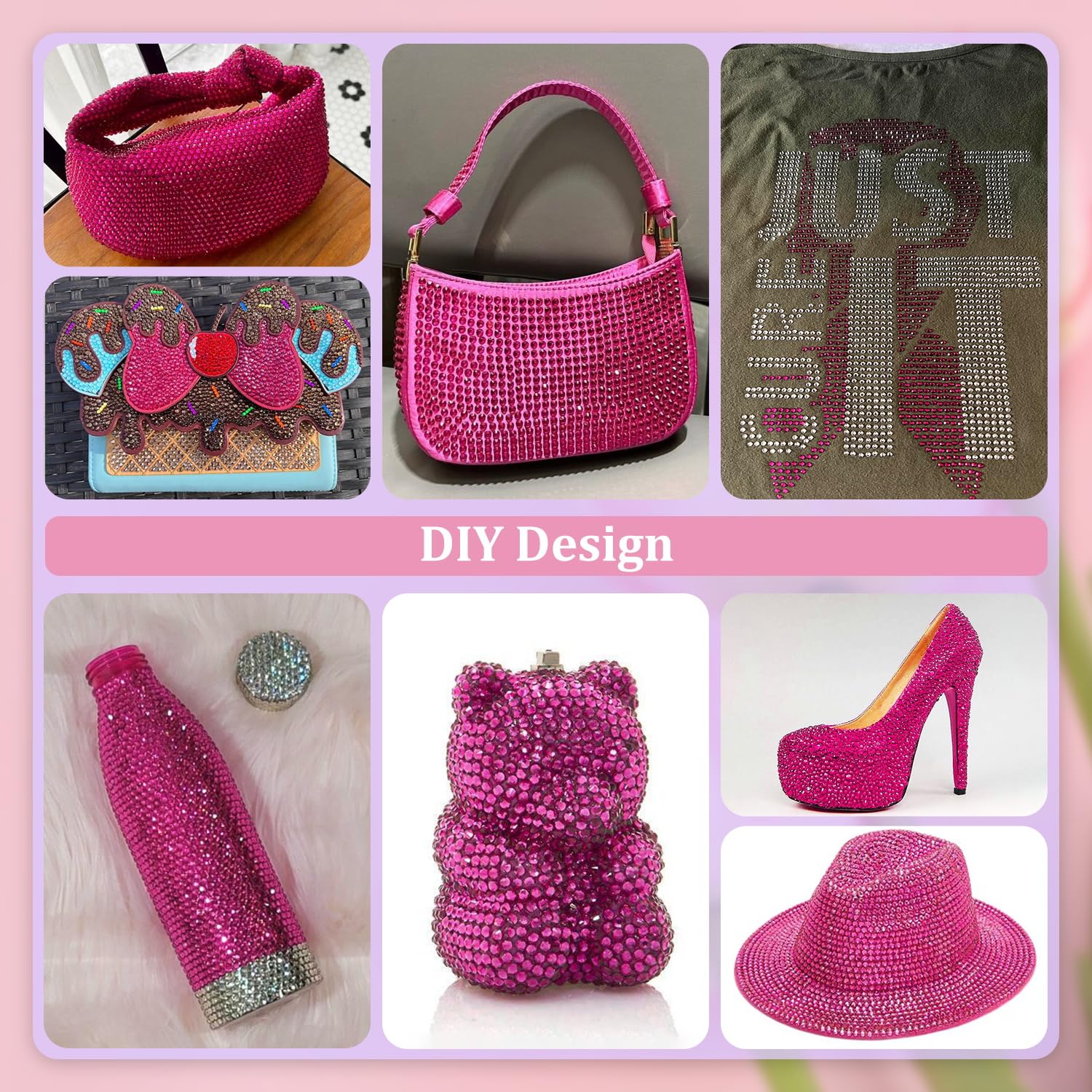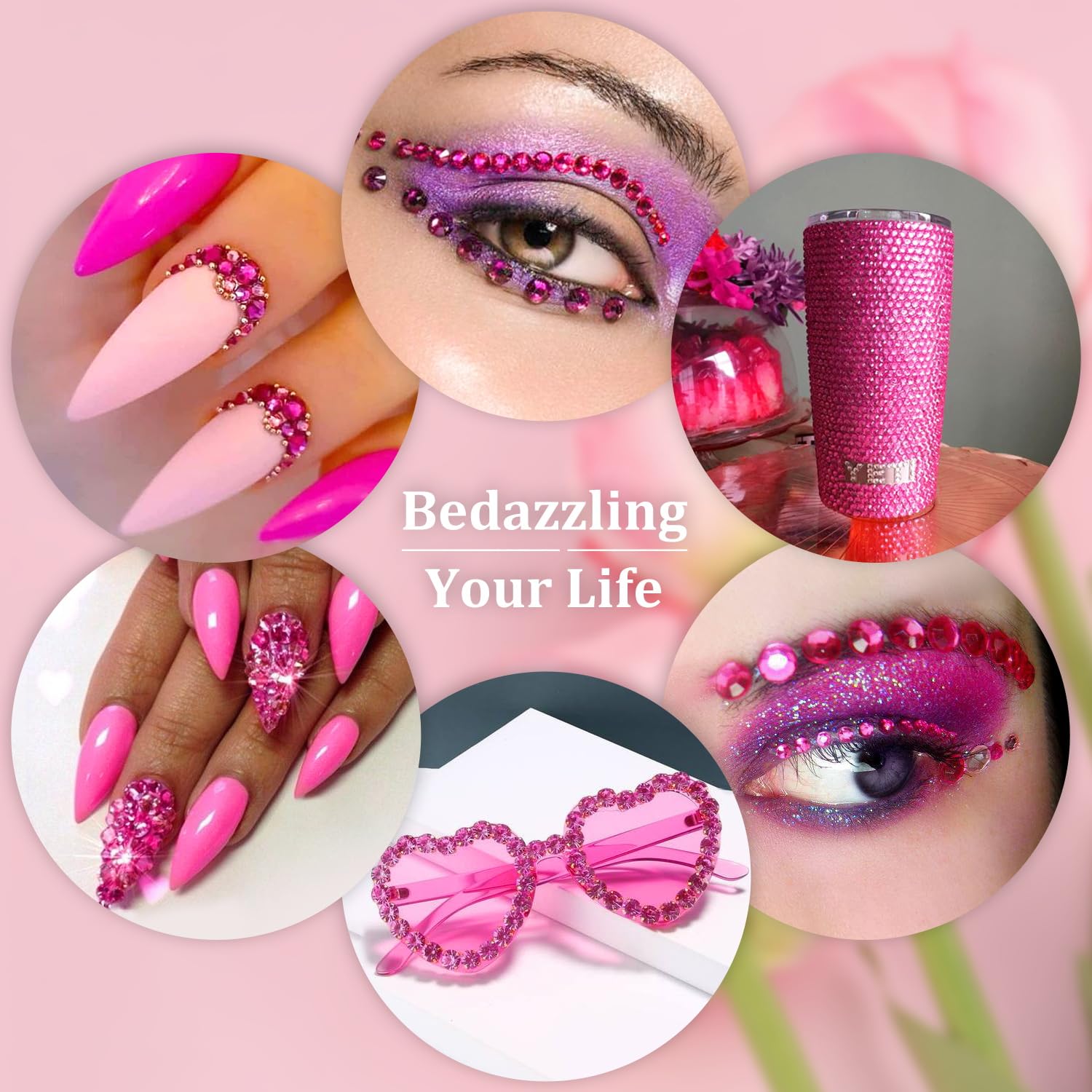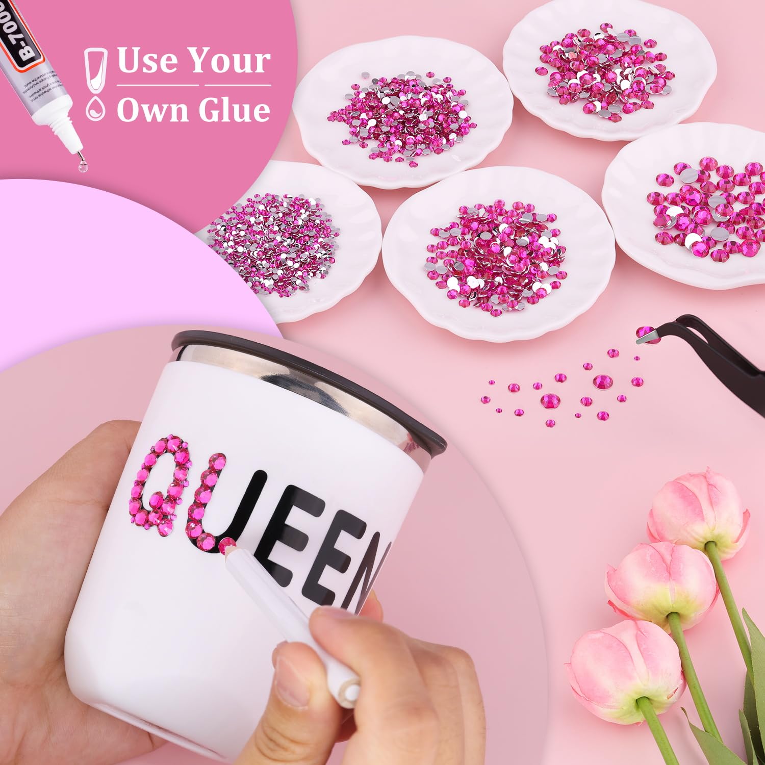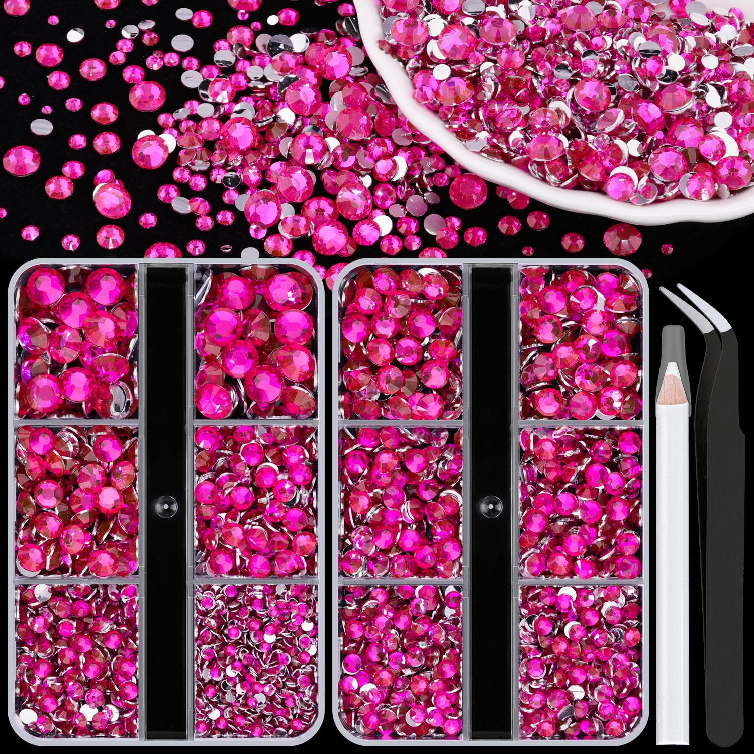Resin Rhinestones for Crafting, 2 Boxeses Hot Pink Multi Sizes Flatback Bedazzling Crystals for Crafts Nail Art Deco, Non Hotfix Gems Charms for Tumbler Shoes Clothing Fabric Face Makeup