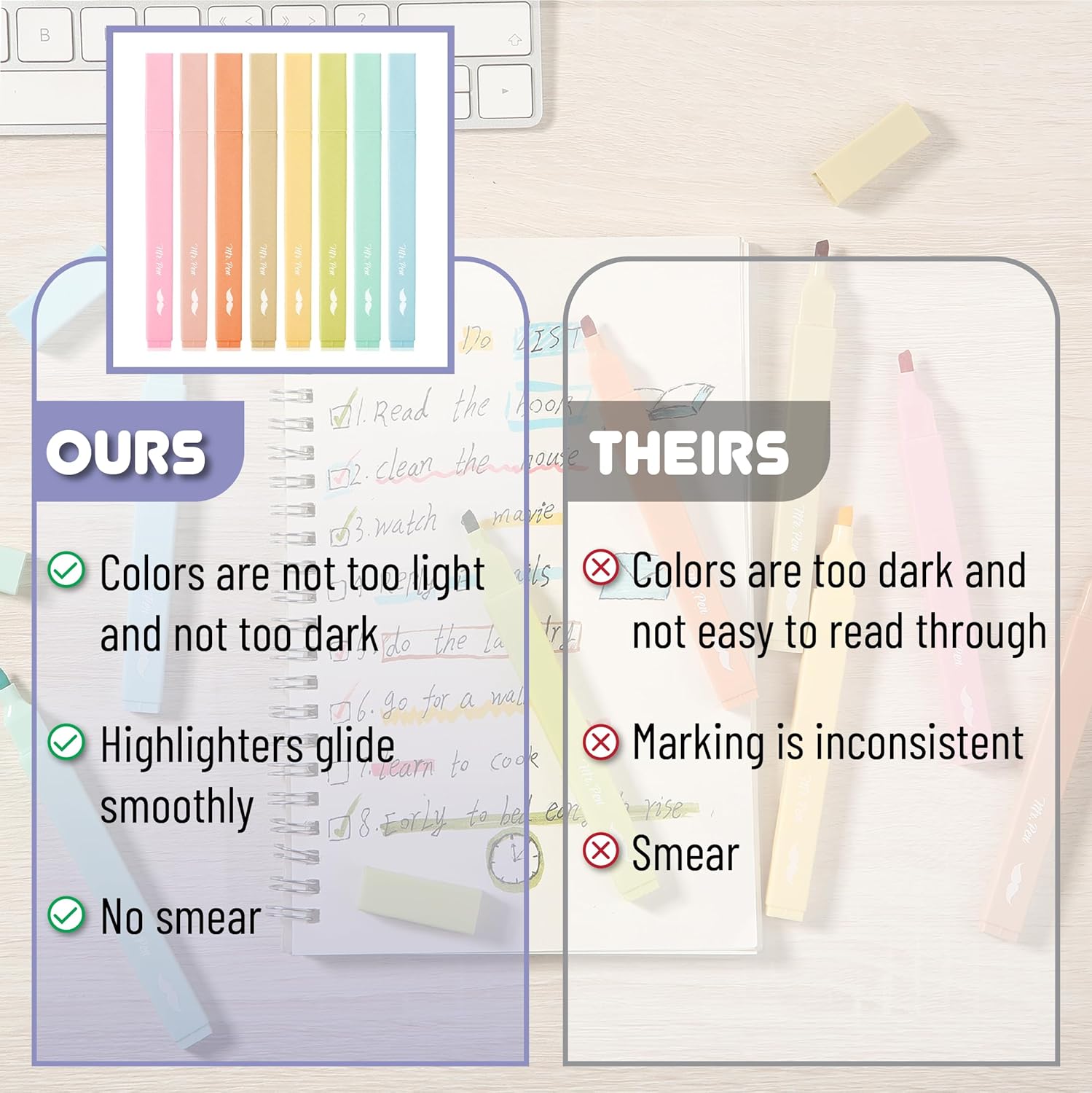 - Make your notes and papers pop with our soft and gentle highlighters! This package includes 8 highlighters in non-neon, assorted colors. Our highlighters are perfect for making your work and school life a little bit brighter.