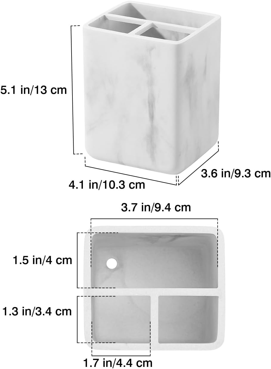 - ใ๐๐ข๐ ๐ก-๐ช๐ฎ๐๐ฅ๐ข๐ญ๐ฒ ๐๐๐ญ๐๐ซ๐ข๐๐ฅใThe toothbrush holder set is made of natural resin, which is waterproof,sturdy.and non-irritating smell, safe to hold oral items. It is durable enough to provide long-lasting functionality in the wet bathrooms. Easily cleaned with a damp cloth or water (0-104โ)