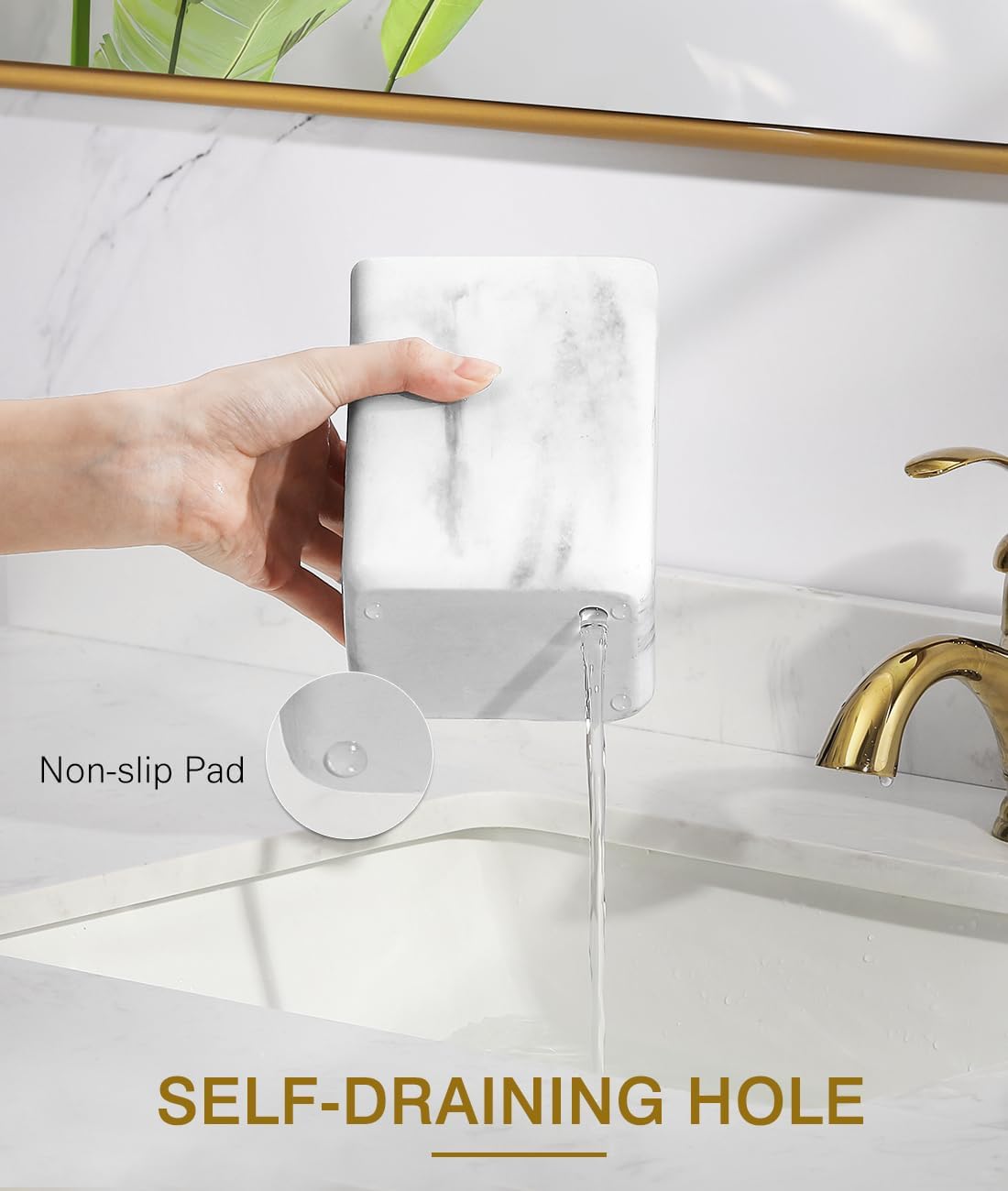 - ใ๐๐๐ฅ๐-๐๐ซ๐๐ข๐ง๐ข๐ง๐ & ๐๐จ๐ง-๐ฌ๐ฅ๐ข๐ฉใThe bathroom toothbrush holder with a self-draining hole keeps the storage area dry and neat, avoiding water accumulation. Non-slip pads keep the toothbrush organizer securely in place and avoid scratching your cherished vanity.
