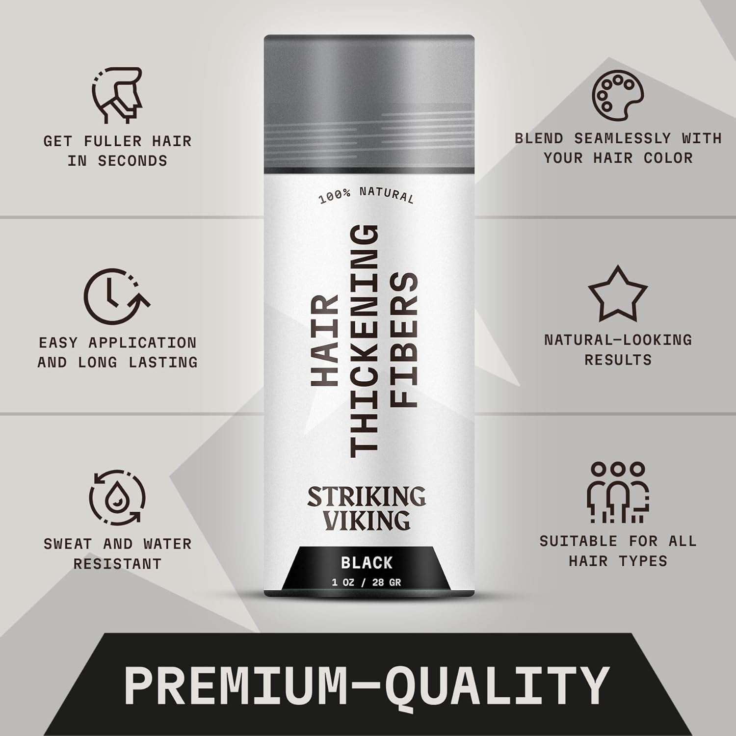Striking Viking Hair Building Fibers - 28g, Black - Fuller Look Thinning Hair Fibers - Bald Spot Concealer & Barber Enhancement - Clump-Proof Powder & Hold Spray