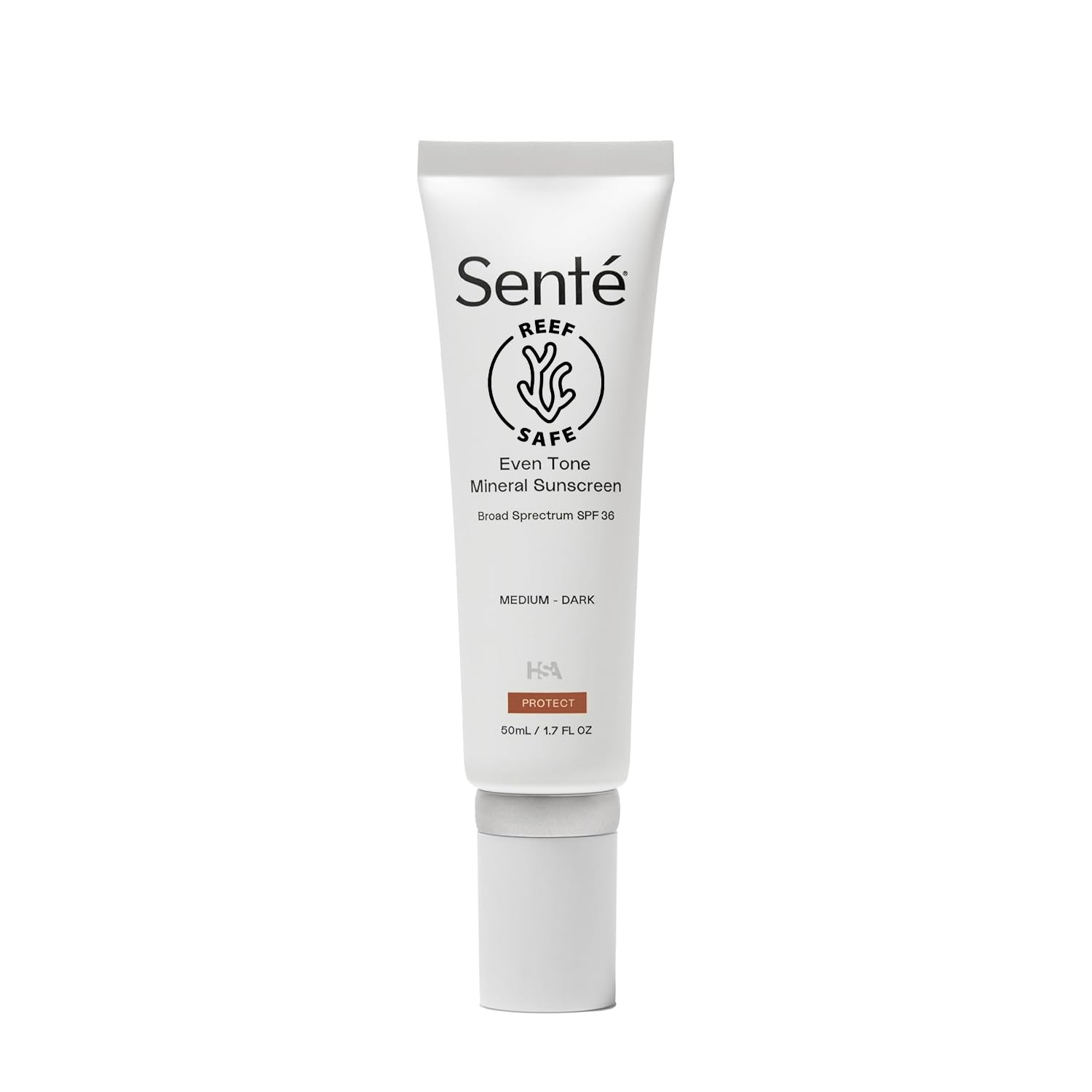 Senté Even Tone Mineral Sunscreen Tinted | SPF 36 Medium-Dark | Hydrating, Lightweight Sun Protection Treatment for Redness & Discoloration | UVA/UVB & Blue Light Defense | 1.7 oz