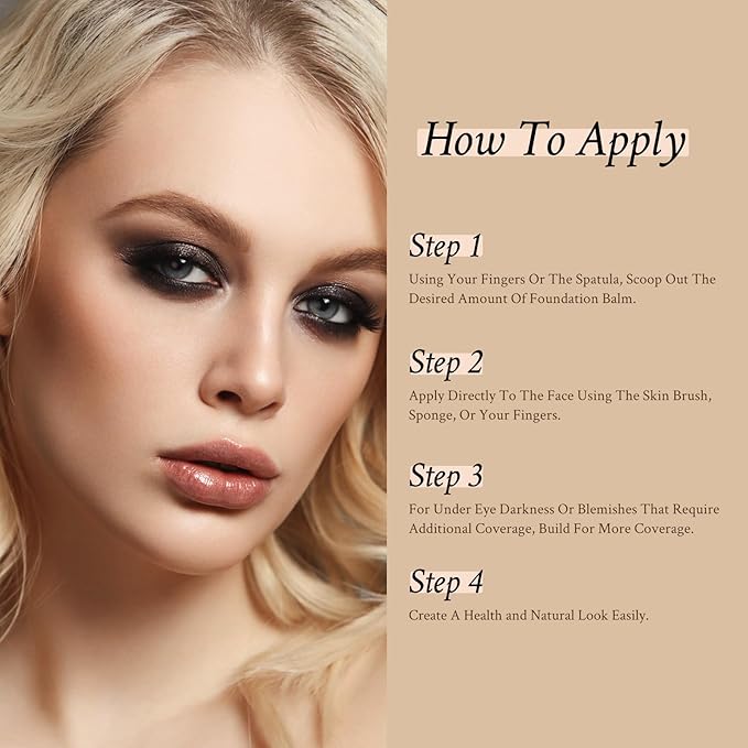 - 【4-IN-1 FOUNDATION BALM】 This high-coverage foundation balm pores, diminishes fine lines, covers imperfections, and also evens out skin tone. Get a flawless skin effect for a smooth, natural look.