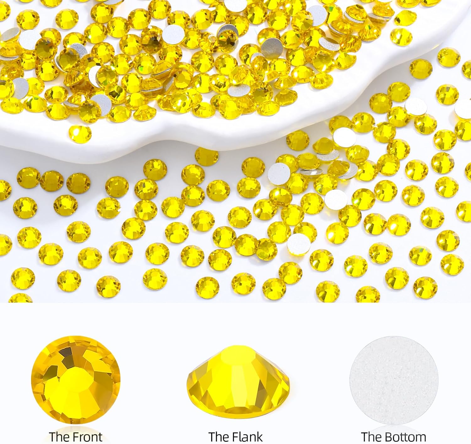 Citrine Flatback Rhinestones, Glass Rhinestones for Nail Art and Craft, Glue Fix, Loose Crystal Gemstones(Yellow, SS10, 1440pcs, 2.7-2.8mm)