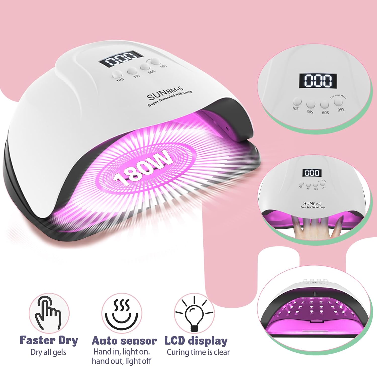 - WARM TIPS & BEST SERVICE:Our professional nail kit is suitable for beginners, with easy to operate nail tools.UV Nail Lamp can only fully cure the top gel, compatible with other gels nail polish curing finished with sticky is a normal phenomenon. If you have any questions about nail sets, we will try our best to help you.