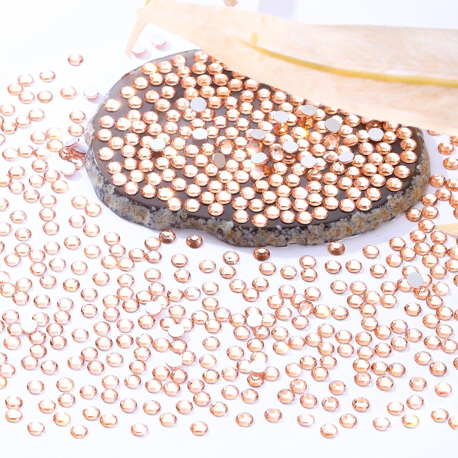 Champagne Flatback Rhinestones, Glass Rhinestones for Nail Art and Craft, Glue Fix, Loose Crystal Gemstones(Champagne, SS6, 2880pcs, 1.9-2.0mm)