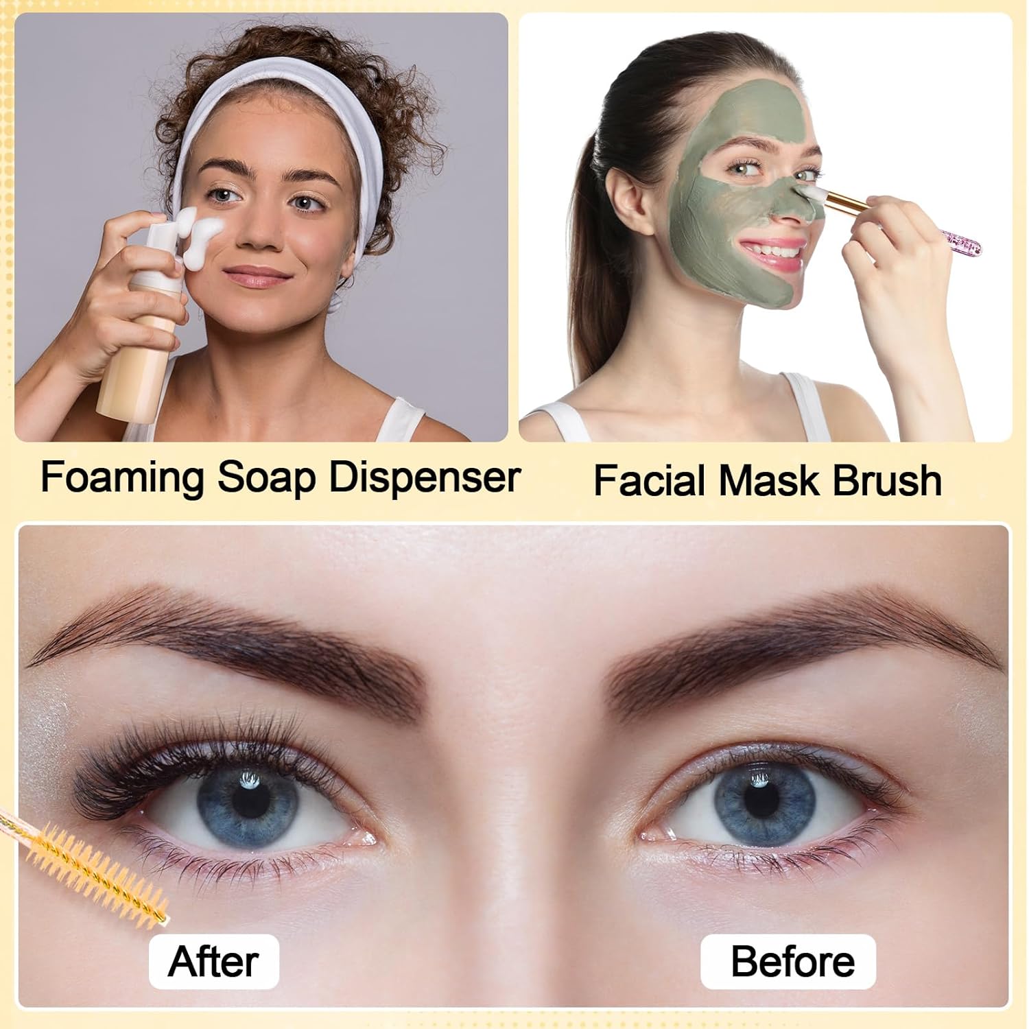 Zhehao 80 Pcs Lash Shampoo Bottle Brushes Kit 20 Foam Pump Dispensers 20 Lash Shampoo Brushes 20 Eyelash Aftercare Bag 20 Cleaning Pipes, Eyelash Extension Supplies(Gold)