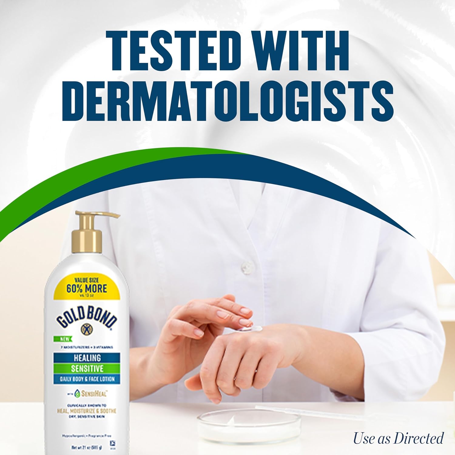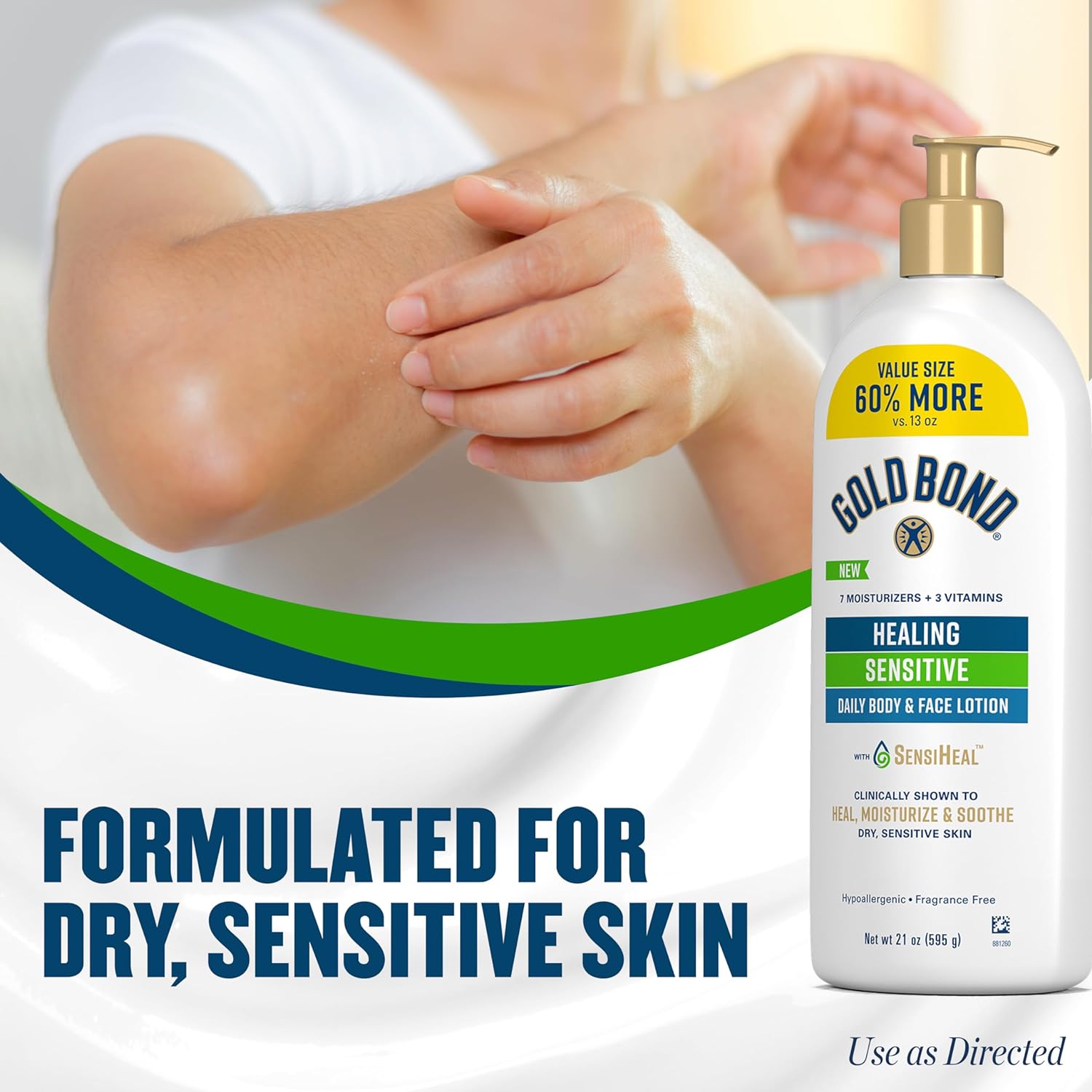 - Includes one (1) 21-oz. pump bottle of Gold Bond Sensitive Healing Daily Body & Face Lotion