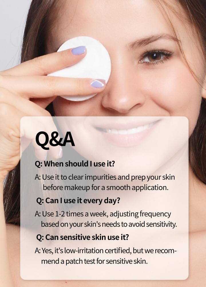 - For all skin types: This Korean facial exfoliating face pads are certified as non-irritating. (Irritating score: zero (0.00)). it is suitable even for sensitive & trouble skin.