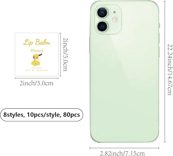 - SIZE: square custom lip balm diy label sticker about 1.96×1.96inch (5x5cm), 8 styles, 10pcs/style, 80pcs/set.