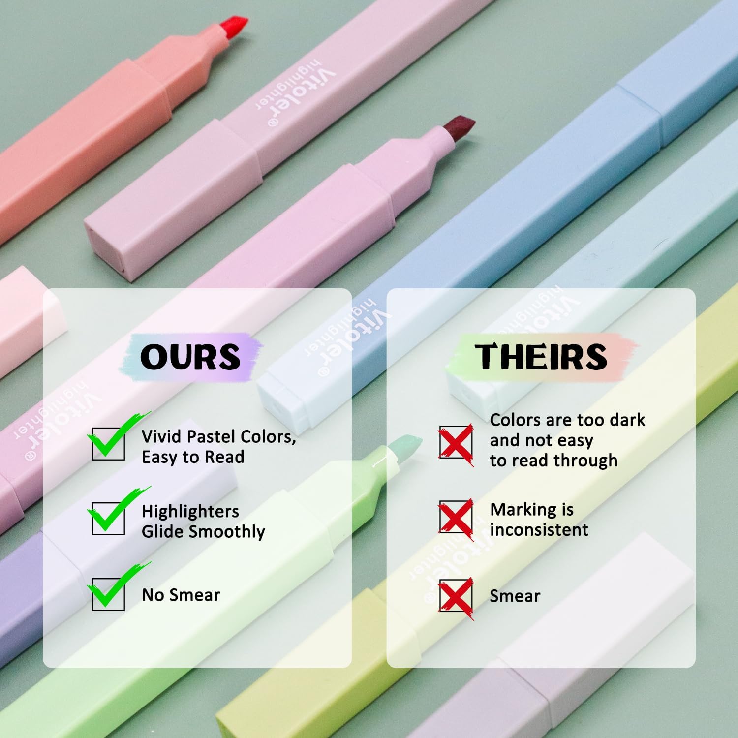 Vitoler Bible Highlighters with Soft Chisel Tip,10Pcs,Lake Colors,Aesthetic No Bleed Bible Highlighter Pastel,Cute Highlighters for School Office Supplies