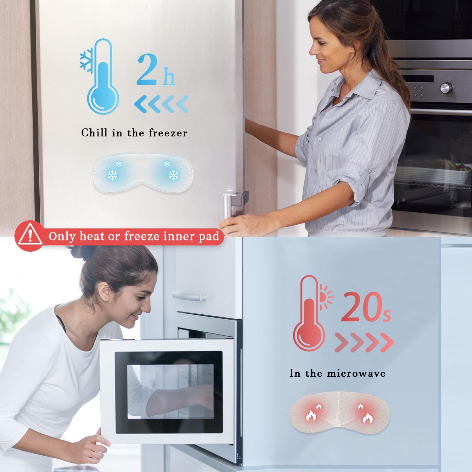- Cold and Hot Therapy Options: Equipped with both a Gel Pad and Microwavable heated Flaxseed Pad, this cold/heated mask provides versatility with two therapeutic options. The warm compress for eyes reduces puffiness and soothes tired eyes, while the hot therapy option promotes relaxation and alleviates tension. Easy to use, choose the therapy that suits your preference.