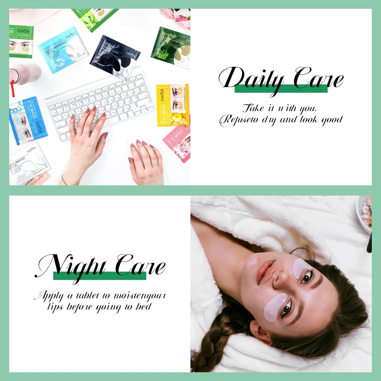 - Day Care and Night Repair: using eye mask during the day can moisturize and form a protective film around the eyes, making the eyes more hydrated and plump; Used at night, it can deeply repair and hydrate the skin in contact, making your eye area younger and more beautiful