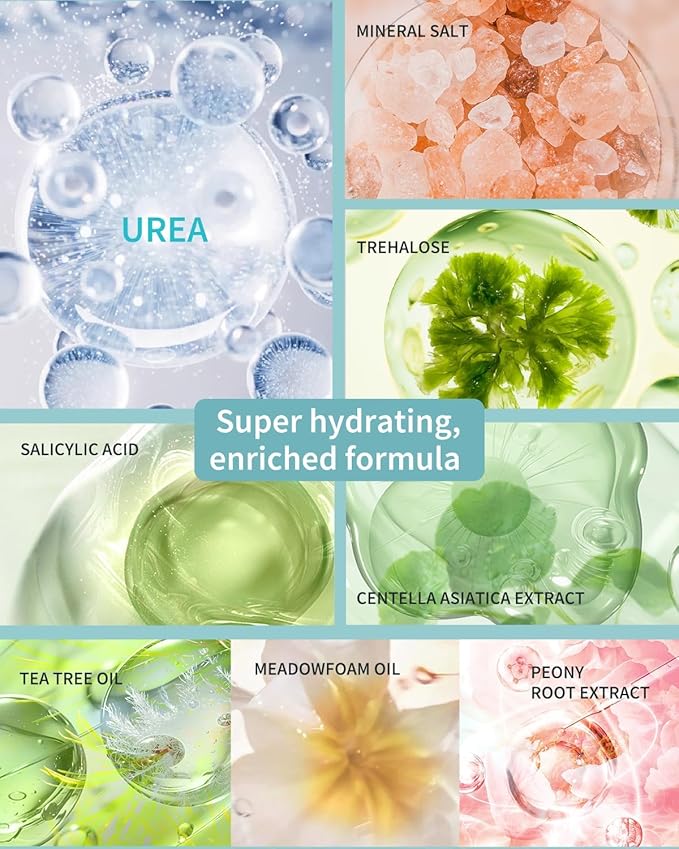 • Deep Cleansing, Soothing & Repairing: The natural mineral salt scrub with urea is used with a blend of essential oils enriched with tea tree oil to quickly soften calluses and rough skin, helping to gently exfoliate and remove dead skin while hydrating and providing essential nutrients to dry skin. After scrubbing, apply a few drops of the serum evenly to soothe and deeply moisturize cracked skin. Leaves our hands and feet feeling soft, smooth, comfortable and clean.