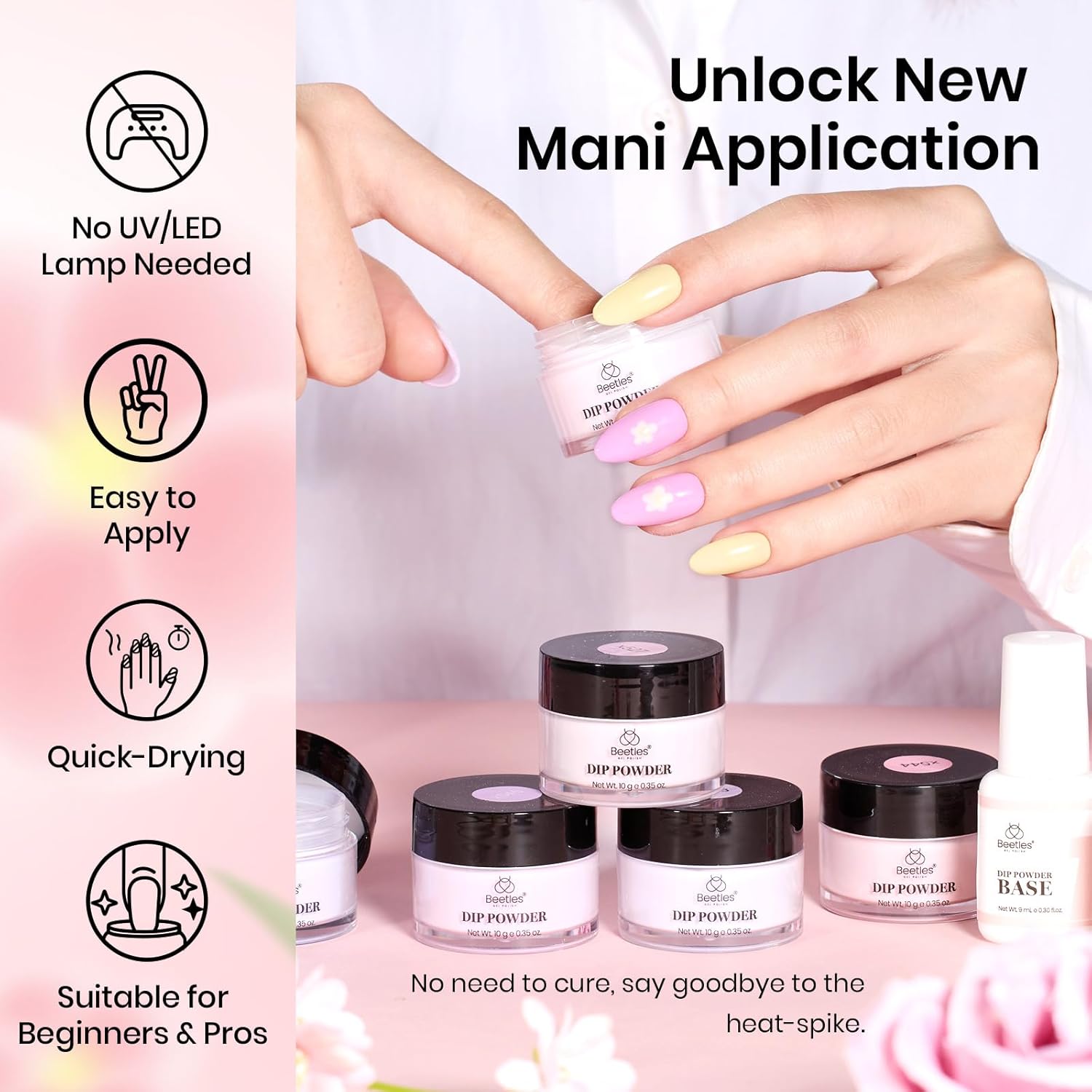 - High Quality&Long Lasting: The high-quality dip powder paired with our beetles dip liquid set boasts exceptional adhesion, enabling a perfect bond with natural nails for a durable, chip-resistant, and non-fading finish. It leaves nails looking natural, lightweight, and with impeccable shine