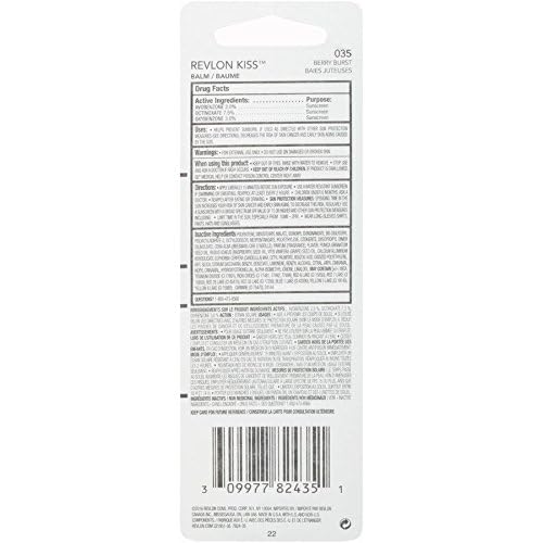 Revlon Lip Balm, Kiss Tinted Lip Balm, Face Makeup with Lasting Hydration, SPF 20, Infused with Natural Fruit Oils, 035 Berry Burst, 0.09 Oz (Pack of 2)