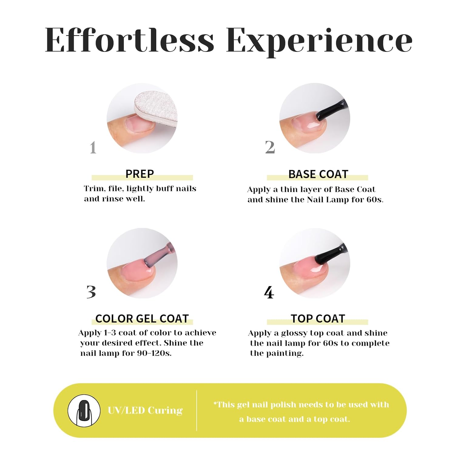 - Professional salon-quality: Experience professional-quality results in the comfort of your own home with this high-quality gel nail polish. Achieve salon-worthy nails without the hassle and expense of frequent salon visits.