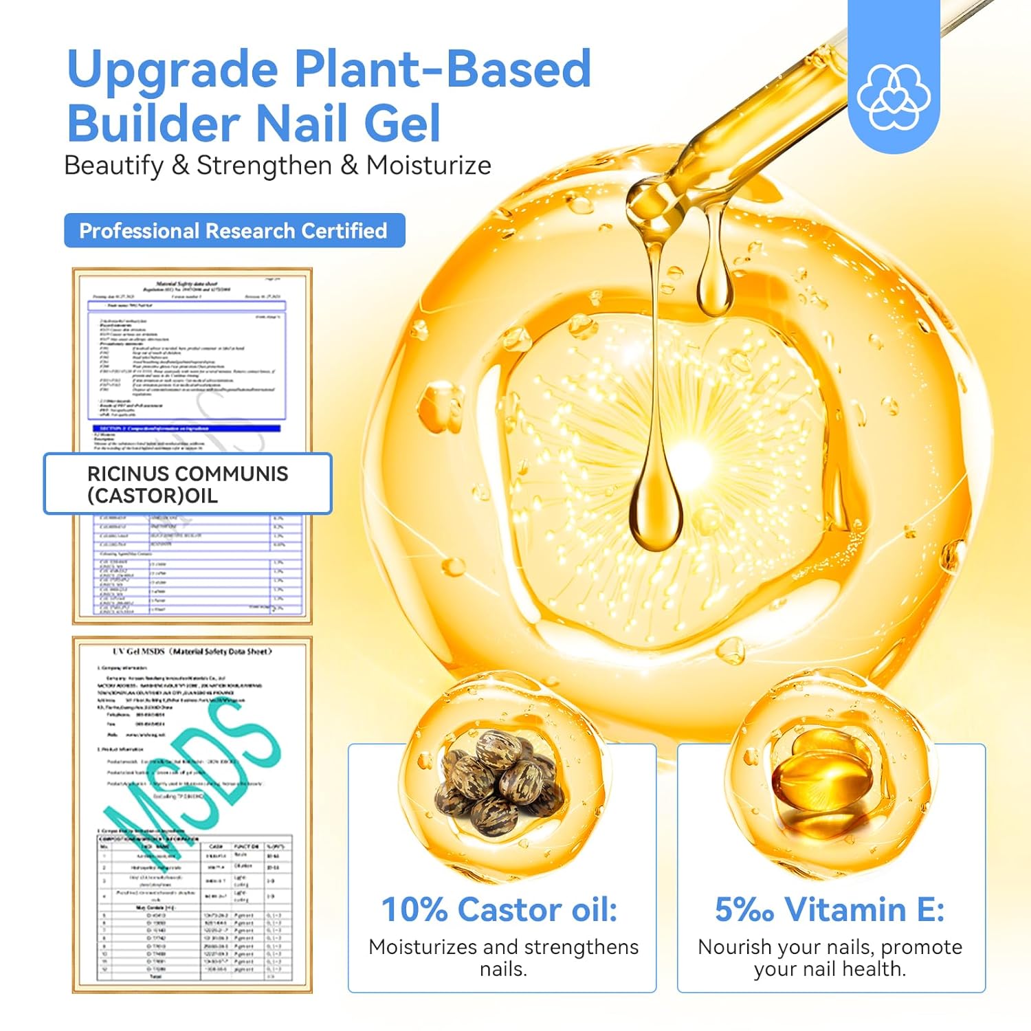 - Rich in Castor Oil & Vitamin E: SAVILAND clear gel builder is added castor oil and vitamin E in the hard gel for nails, foundation gel and top gel, which is the most significant advantage of our new version of nail strengthener gel. While enhancing nails, it can also help moisturize, shine, protect, and promote healthy growth of your nails. Not just staying on a single track like nail design
