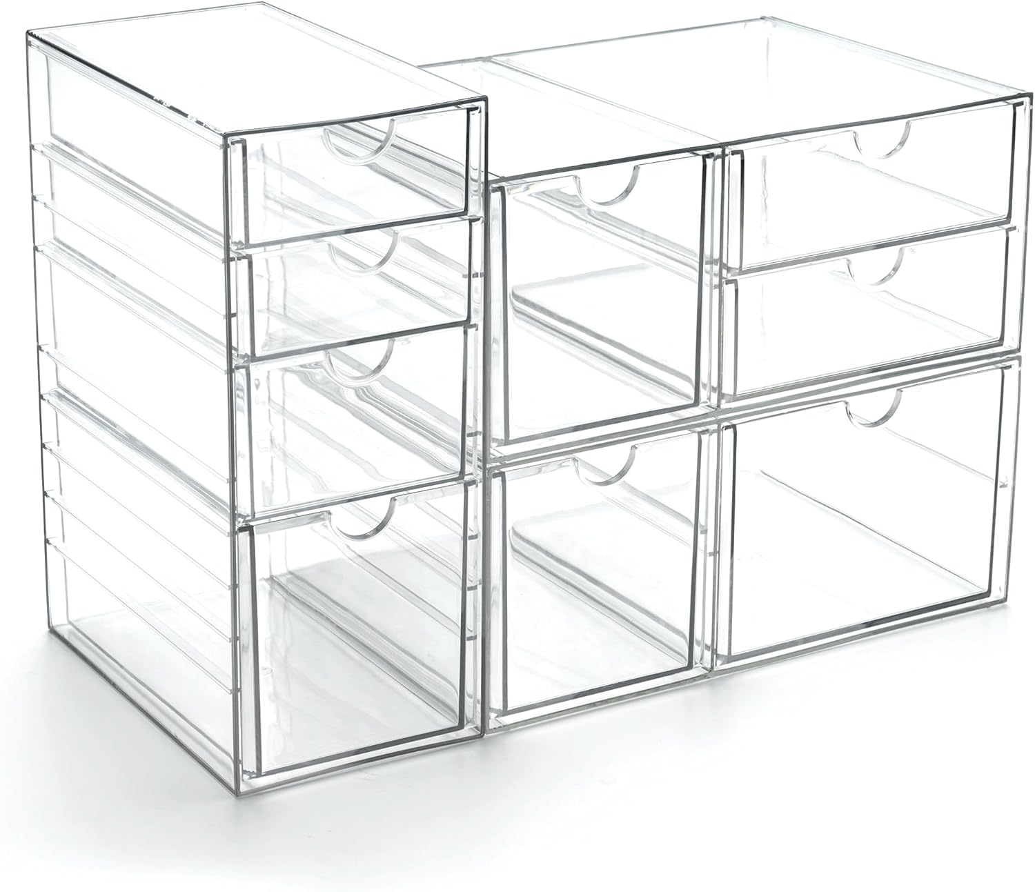 - Multiple Sizes and Expandable: This set includes 3 individual acrylic drawer units, offering a total of 9 drawers, these clear drawer organizers provide customizable combinations to meet your specific storage and organizational needs. Each acrylic drawer units is 4.2x6.89x9.92 inches. The office supply organizer can be stacked vertically or expanded horizontally, allowing integration with other sizes and dimensions of storage solutions available in our store.