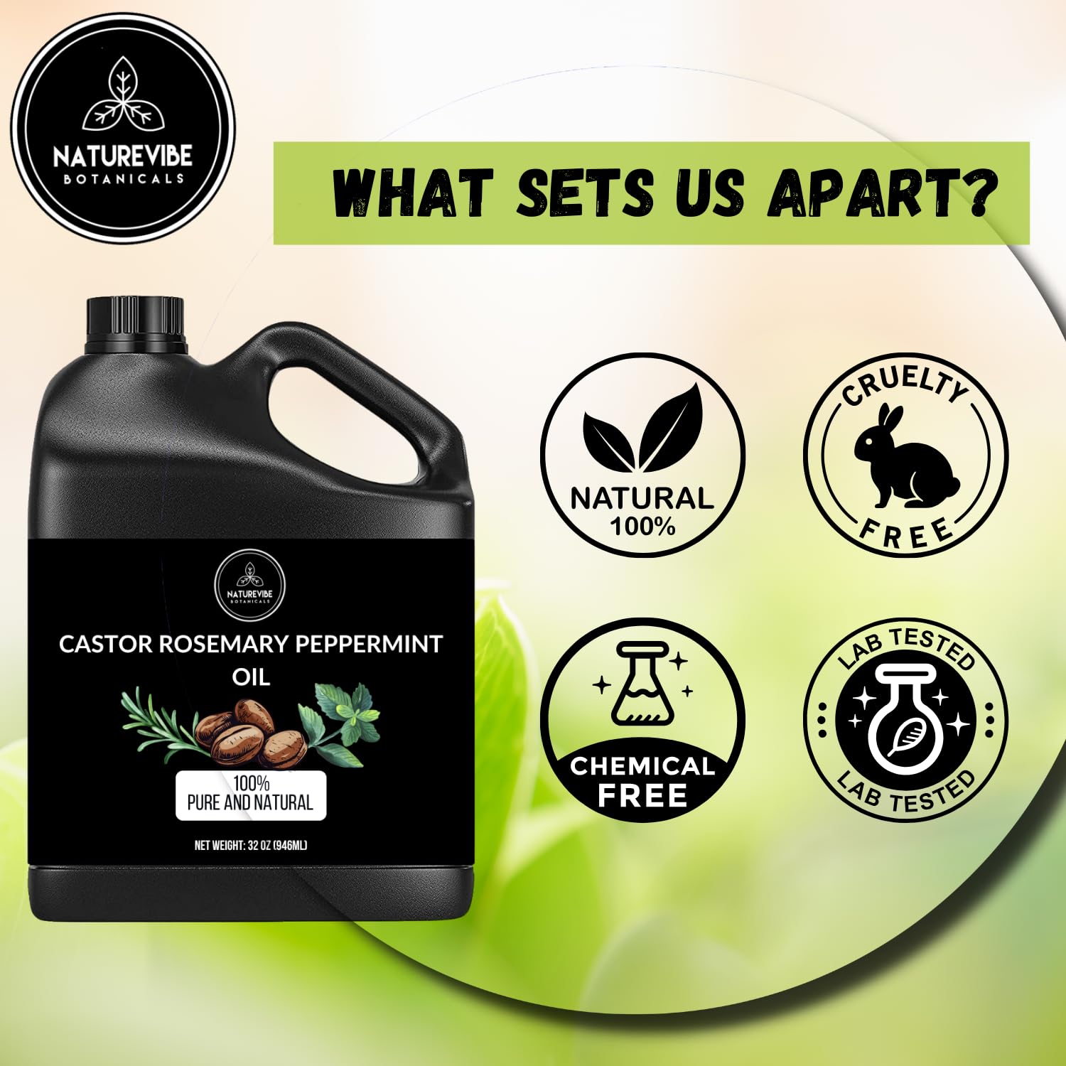 - ✅ Naturevibe’s Castor Rosemary Peppermint Oil, is a blend of all three beneficial oils free of fillers or additives, serves as a luxurious moisturizer for both hair and body. It's cherished by men and women alike as a staple in their daily skincare routines.