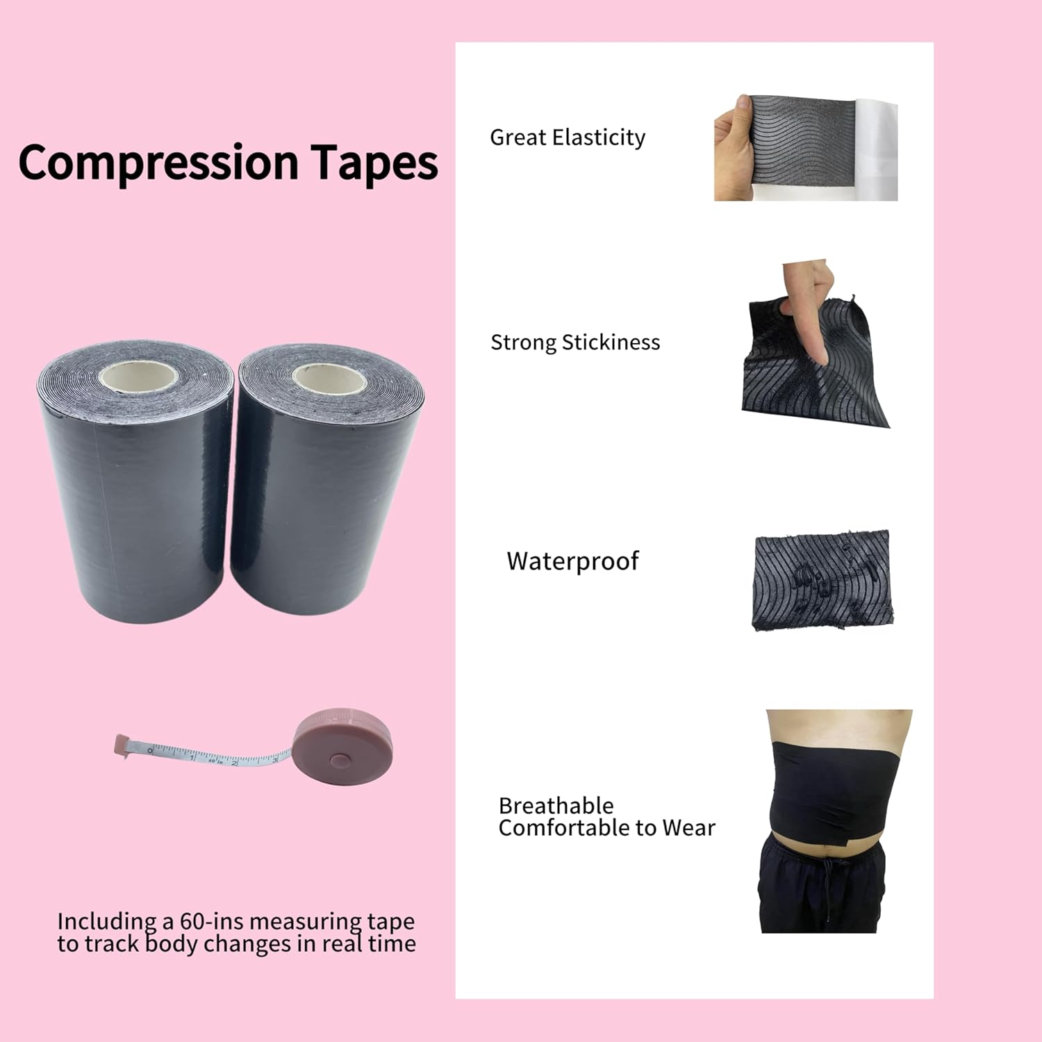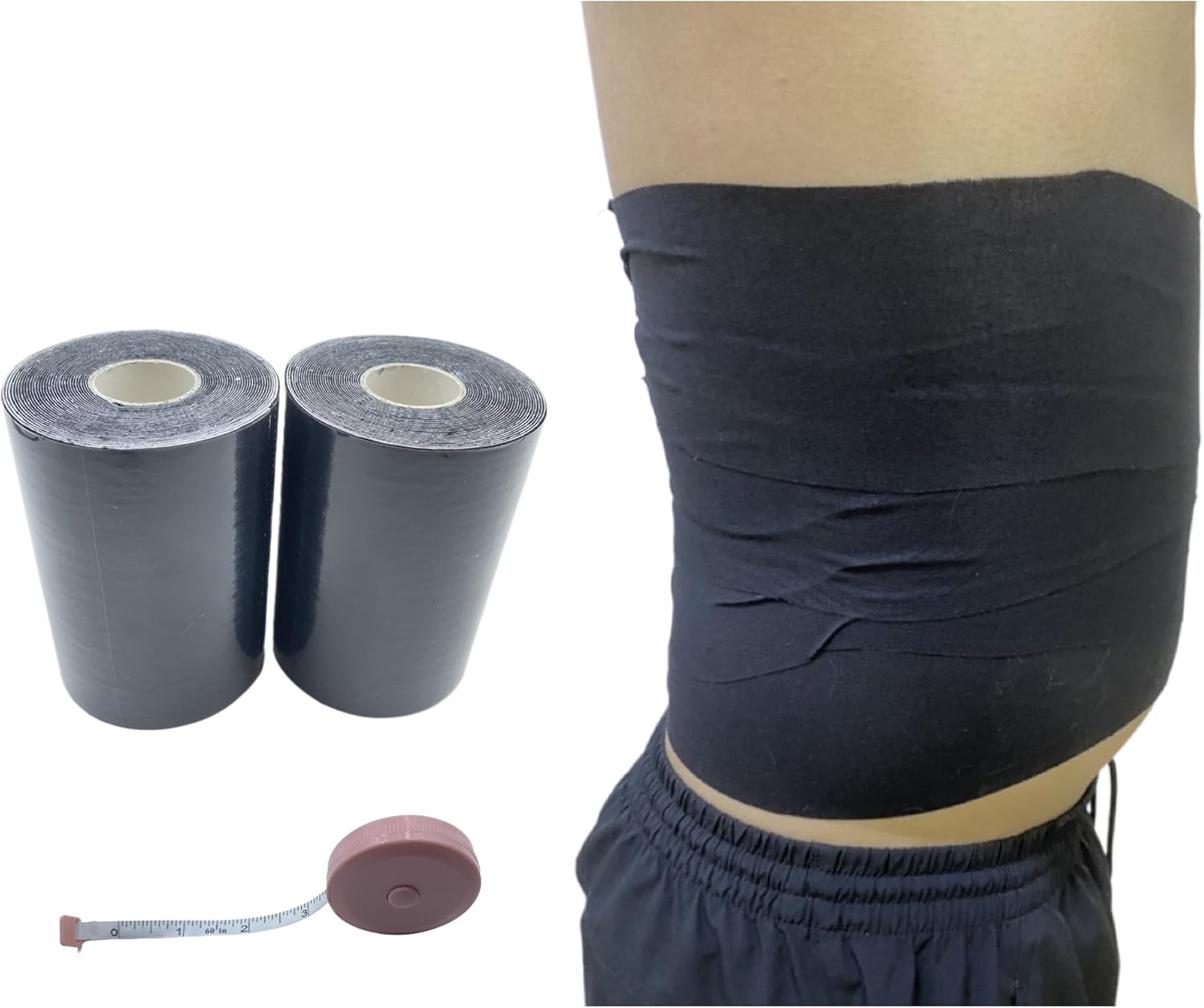 Body Stomach Compression Tape- Extra Wide Kaotic Magic Tape for Workout& Sweater Enhancer& Skin Protection (Black/10CM*5M) (2 Rolls)
